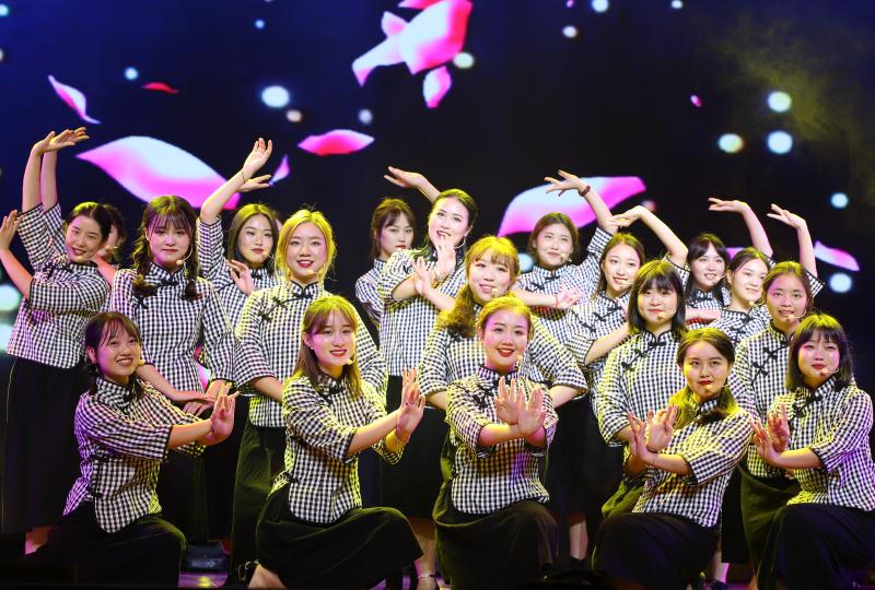 由教师代表和大学生艺术团演唱团演唱的上世纪80年代的4首时代金曲,从多角度呈现了改革开放后人们精神和生活的变化,一首首婉转动听的歌曲回荡在体育馆上空。