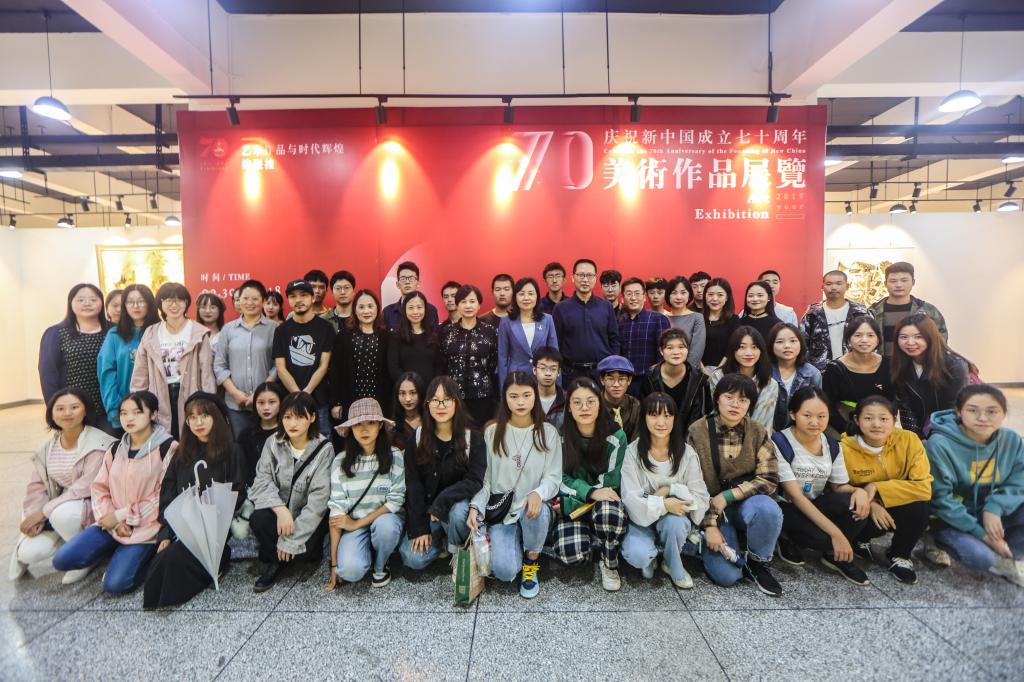张丽君在致词中提到,师生们把对祖国的无限热爱、对幸福生活的赞美诉诸笔端,充分表达了对美的执著追求和对时代的热情讴歌。作为艺术创作者,不能缺席于时代,有责任呈现人民的生活和歌颂伟大新时代的日新月异;希望艺术工作者们继续弘扬爱国主义精神,坚持把追求真善美作为艺术创作的源泉,这也是积极响应习近平主席给8位美术学院老教授的回信中的嘱托。
