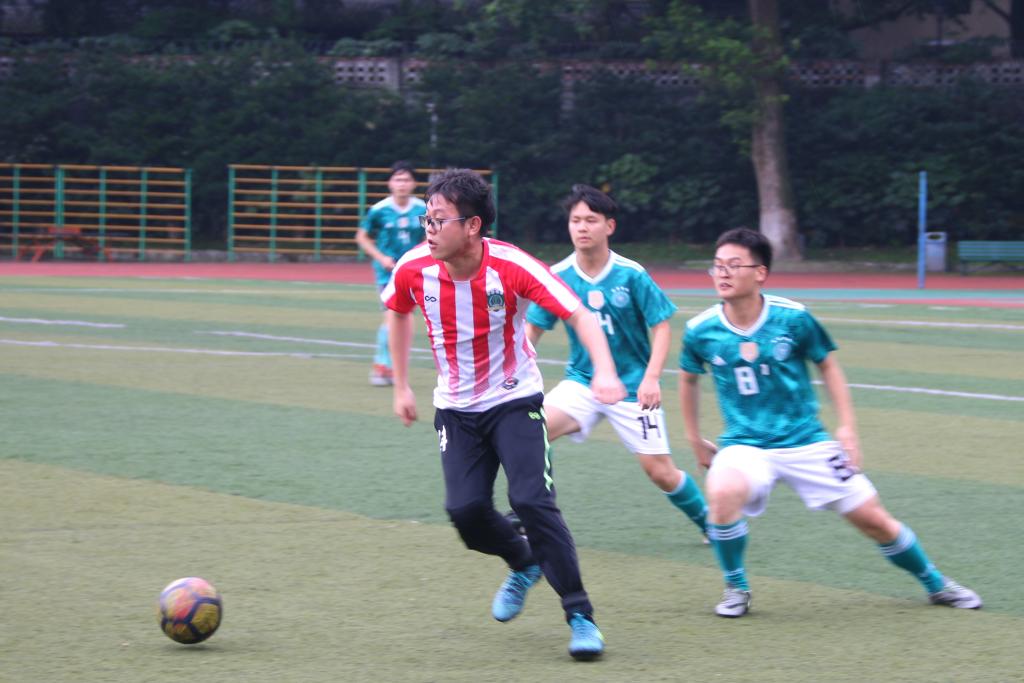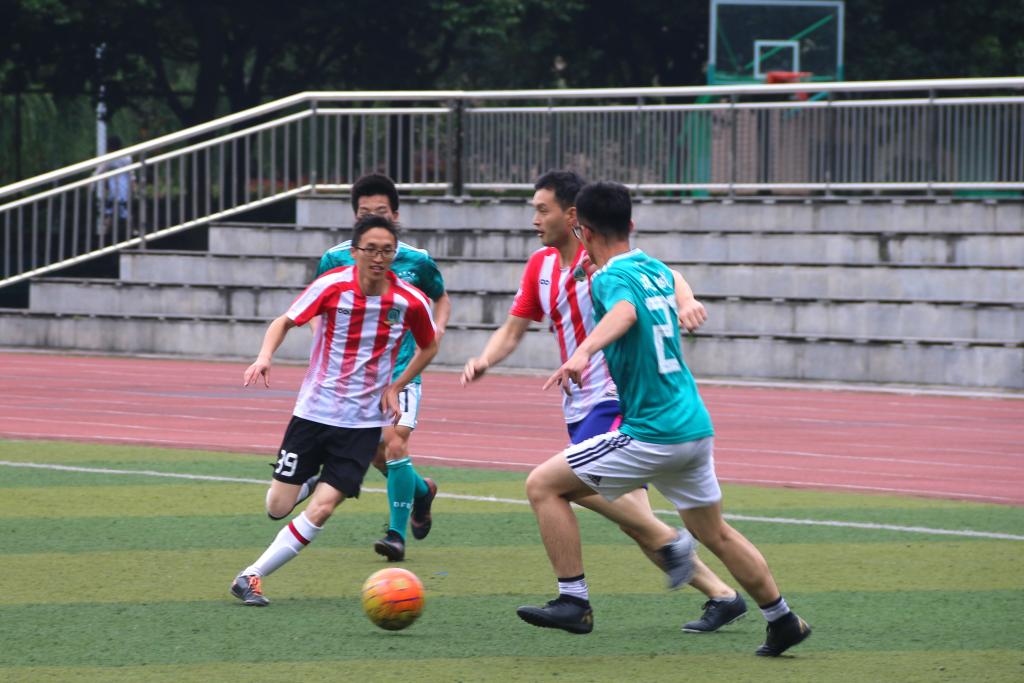 27日,比赛随着裁判一声哨响,教工队与建筑与城乡规划学院队的冠亚军比赛拉开了战幕。双方队员迅速向着足球冲锋,教工队耳听四路,眼观八方,凭借与队友做出默契的配合,与飞速旋转的足球碰撞,在上半场以2:0暂时领先;下半场赛点频频,建筑与城乡规划学院队热血反击,而教工队保持前有优势,稳中求胜,建筑与城乡规划学院队期间几次险踢进球,被教工队成功拦截,最终教工队将比赛锁定在了3:1。