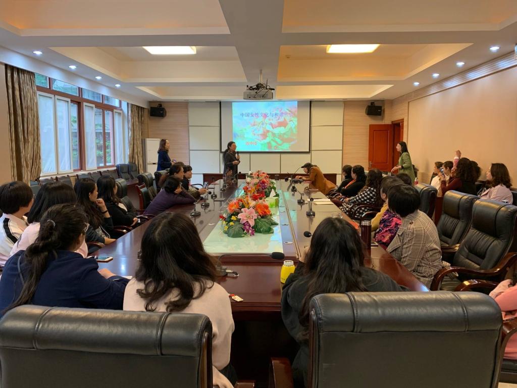 为纪念新中国成立70周年,让女教职工更多的了解在参与新中国建设过程中的杰出的女性代表,颂扬女性自尊、自信、自立、自强的“四自”精神,都江堰校区工会邀请到校区党委副书记陈中桂为女教职工带来了一场题为《我国女性文化与和谐社会》讲座。