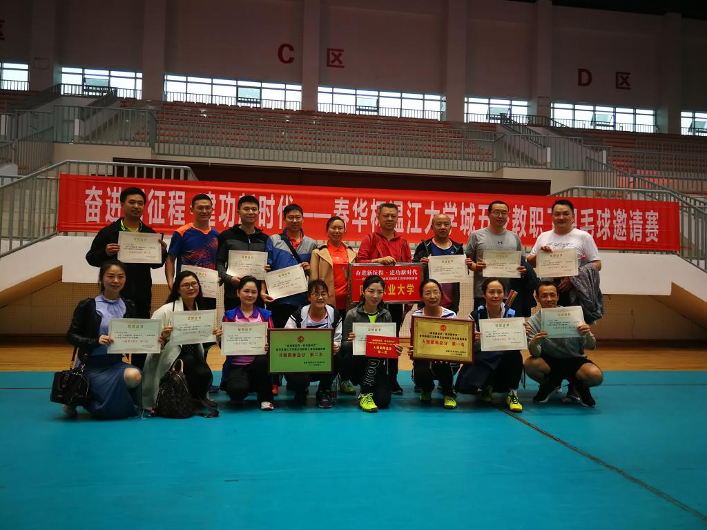 4月12日,在由四川省教科文卫工会主办,成都中医药大学承办的“春华杯温江大学城五校教职工羽毛球邀请赛”中,我校教职工羽毛球队喜获A组(45岁及以上)团体总分第一名,B组(45岁以下)团体总分第二名。