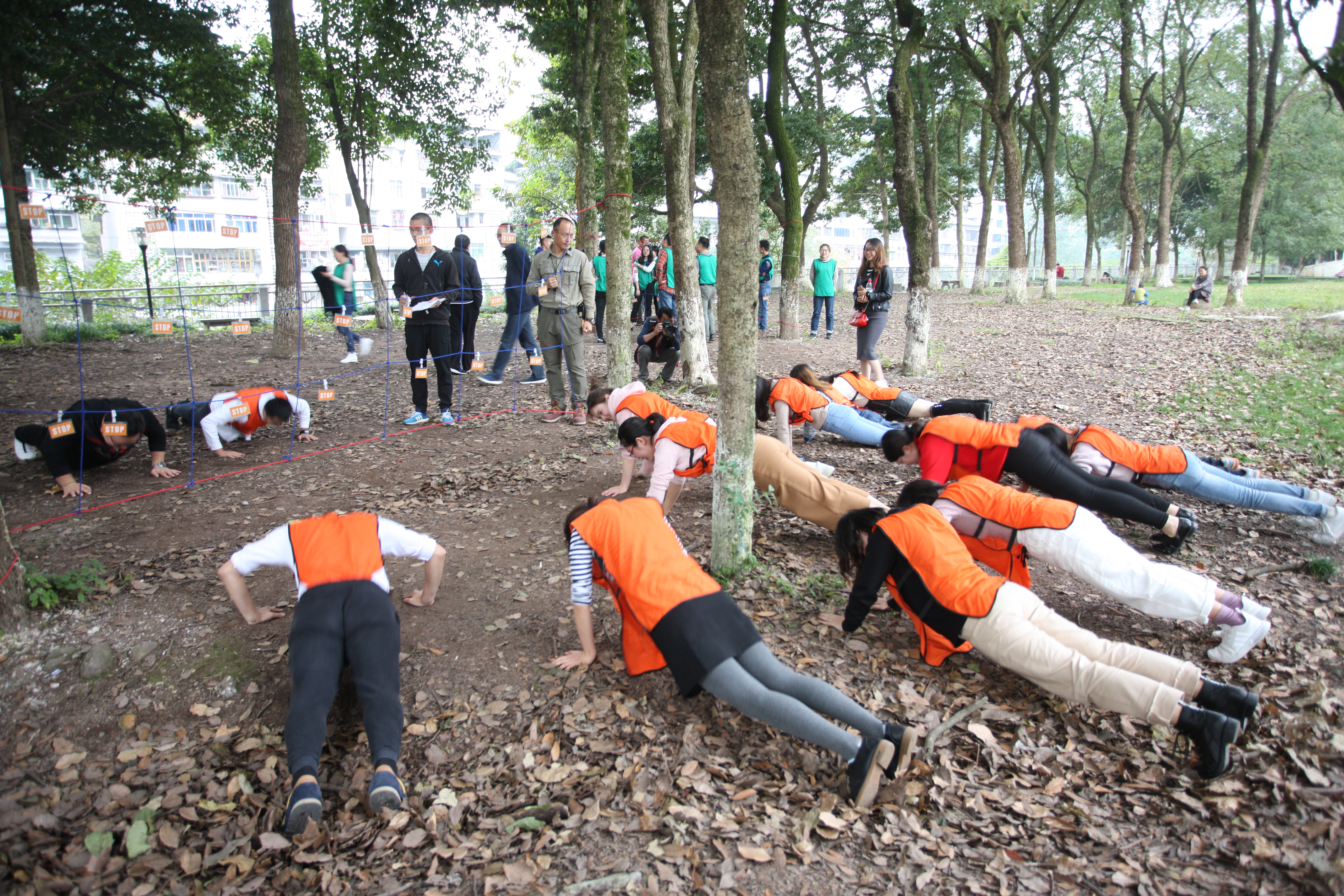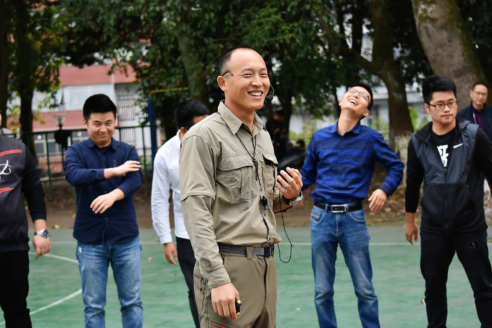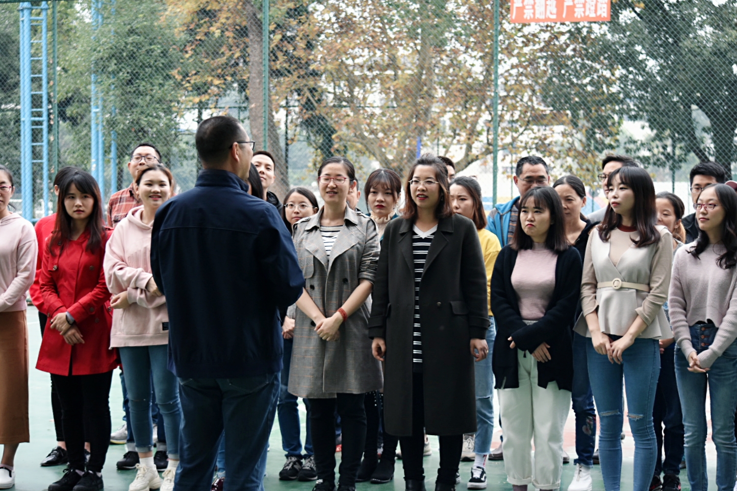 走近了,才看见好多围观的群众,上至七八十的老奶奶,下至牙牙学语的小娃娃,他们也一定是被这些充满朝气的欢声笑语给吸引过来的。一问才知道,原来这是由校工会和人事处共同举办的2018年青年教师素质拓展活动呢,来自全校40多名新进教师参加了活动。