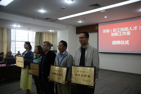 交流环节结束后,会议举行了劳模(职工技能人才)创新工作室授牌仪式。劳模(技能人才)创新工作室是由在技术、业务方面有专长,有一定的理论水平、实践经验、创新能力和创新成果的劳动模范或首席员工(技师)、金牌工人、技术能手等高技能人才作为负责人,以他们的姓名命名的创新团队。此次全省共有28位教职工获得授牌,我校周小秋、张新全、李仕贵三位教师获得授牌。