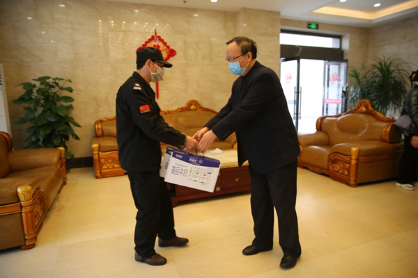 张强一行先后来到校区大门、校医院、学术交流中心、学生公寓及疫情防控工作办公室,看望了正在坚守岗位的疫情防控一线员工,并向他们送上了牛奶以示慰问。张强对大家在此期间的辛勤付出表示诚挚感谢,并嘱咐大家要做好防护,增强信心,全力打赢疫情防控阻击战。