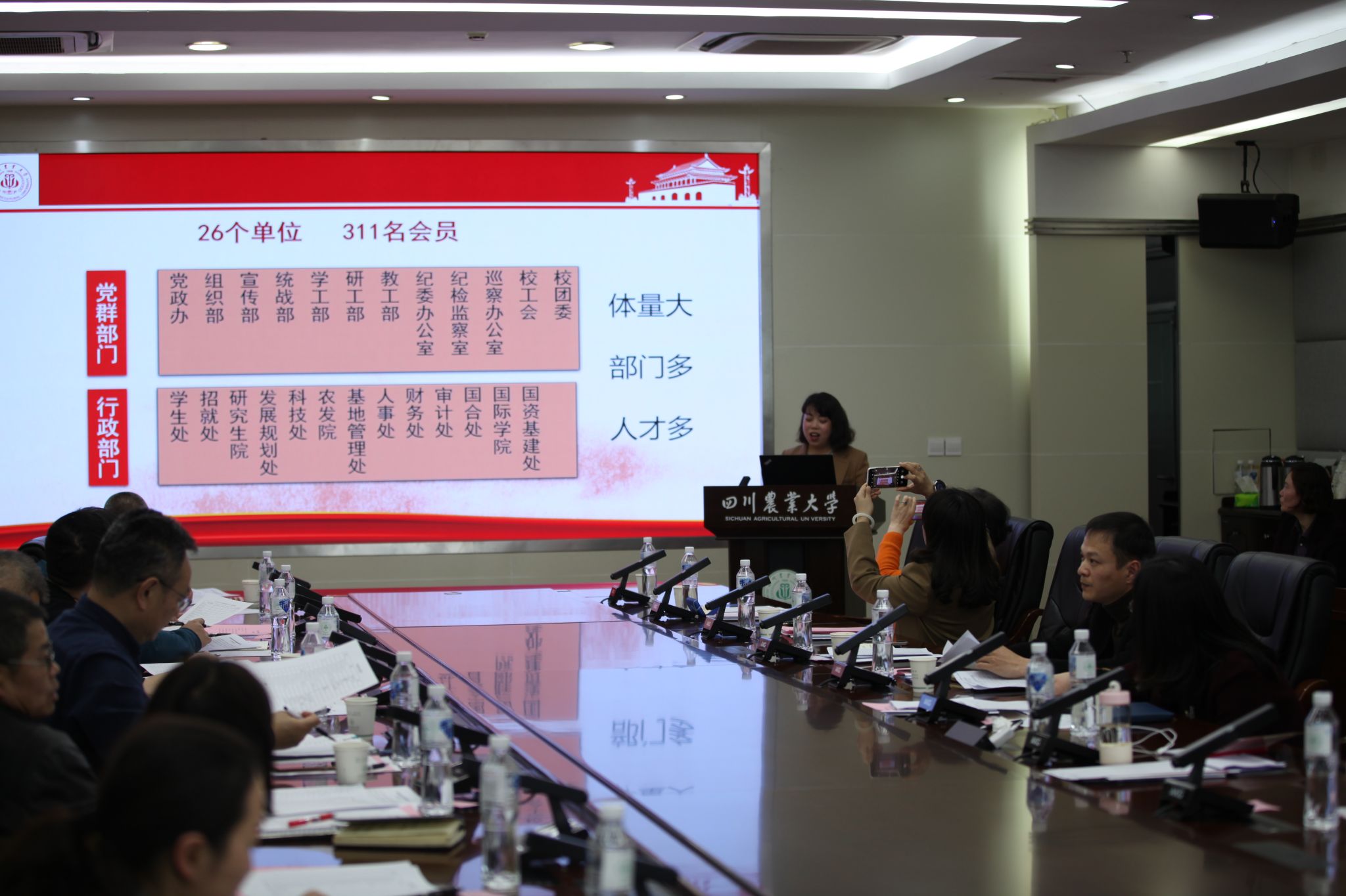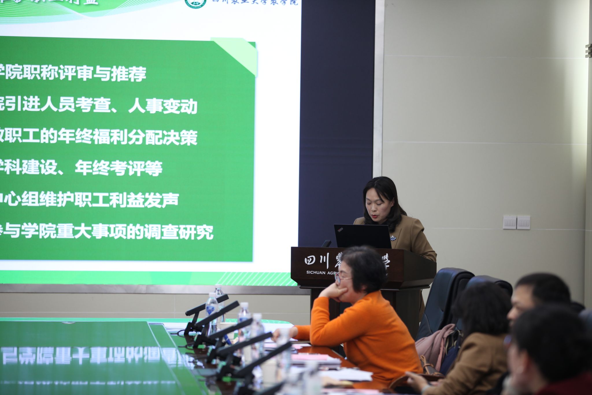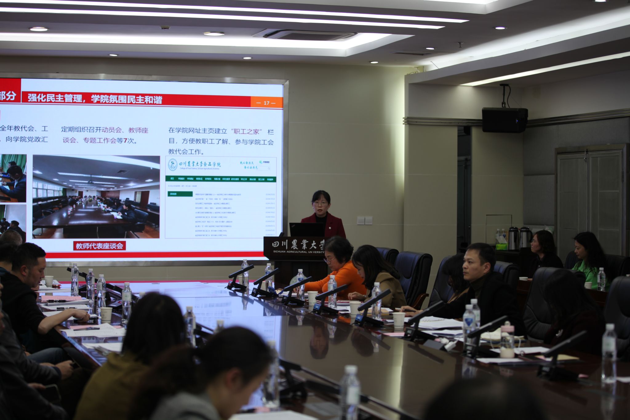 最后,工会专职副主席伍宏宣读了评比结果,并对各分工会在过去一年中在工会、教代会工作中做出了显著贡献给予充分肯定。获奖单位分别是:一等奖:食品学院分会、校党政分会、农学院分会,二等奖:都江堰基础教学部分会、后勤管理处分会、保卫处分会、后勤服务总公司分会、远程与继续教育学院分会,三等奖:草业科技学院分会、马克思主义学院分会、动物科技学院分会、动物医学院分会、体育学院分会、水利水电学院分会、信息与继续教育中心分会。