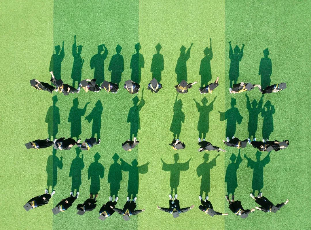 去年6月小班合影留念,到三区新操场时阳光正好,人影相映成趣,用无人机拍下了这张特别的毕业照