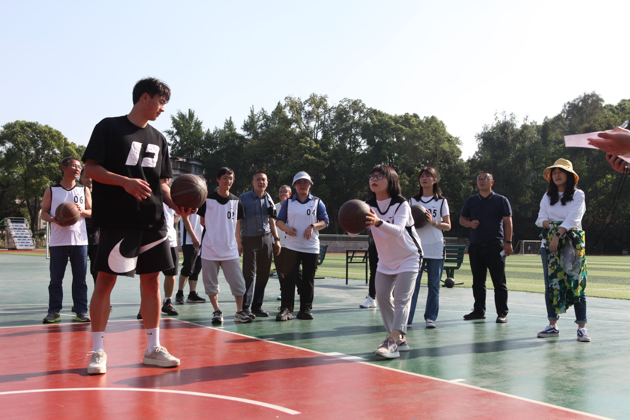 5月13日、5月14日,“喜迎新中国成立75周年”教职工篮球赛投篮比赛、“3+1+1”混合篮球比赛分别在三个校区同时开赛。