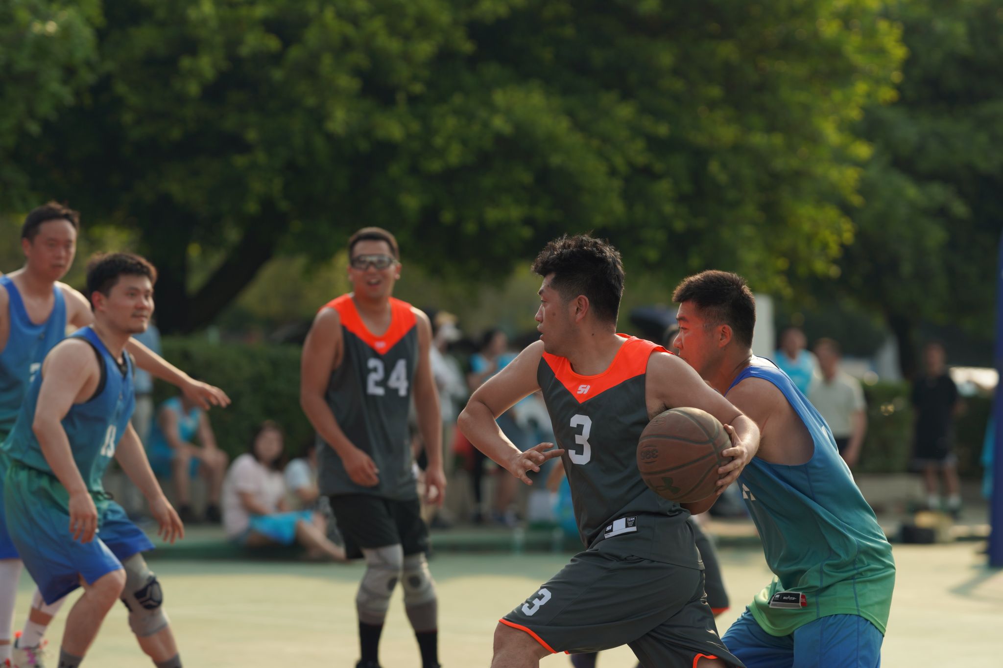 5月27日、30日,精彩纷呈的教工篮球赛冠军、季军争夺赛在三校区篮球场火热上演。现场气氛十分热烈,观众情绪跟着比赛进程此起彼伏,传球、突破、投球、回防一声声呐喊,让整个赛场热情高涨。经过激烈的角逐,哨声落下,体育学院、林学院、基础教学部势不可当的状态分别斩获2024太阳集团tyc86教职工3+1+1篮球赛雅安、成都、都江堰三校区冠军。工会常务副主席杨志钢现场为雅安校区获奖单位颁奖。