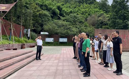 参观纪念馆前,支部全体党员同志在杨志钢的带领下,在邛崃红军长征纪念馆前重温了入党誓词。