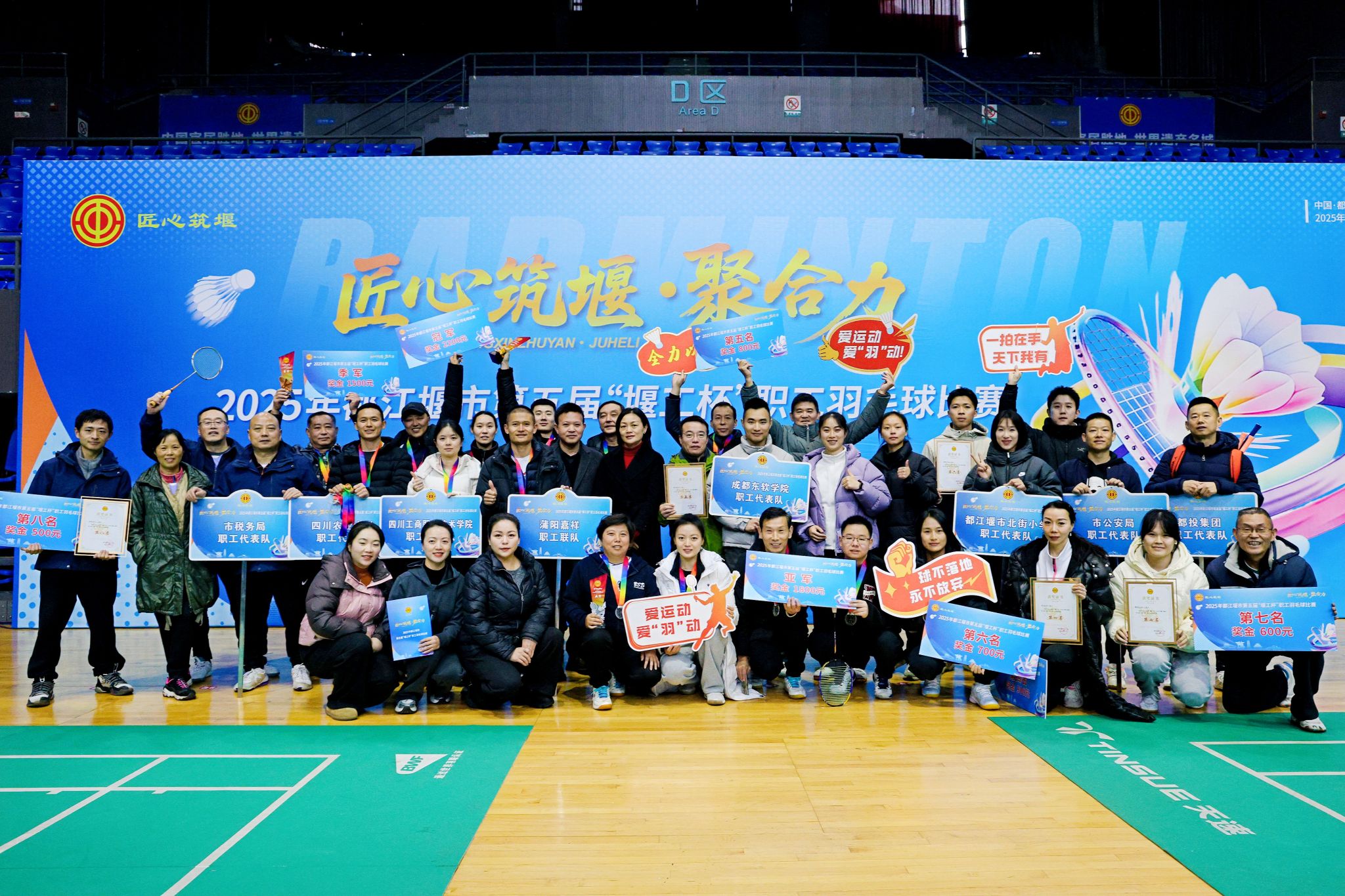 2025年12月21日,第五届“堰工杯”职工羽毛球团体赛在都江堰市圆满落幕。太阳集团tyc86都江堰校区教职工羽毛球协会积极组织、踊跃参赛,最终荣获团体第三名的佳绩,充分展现了协会在推动教职工体育文化、促进身心健康方面的积极意义。