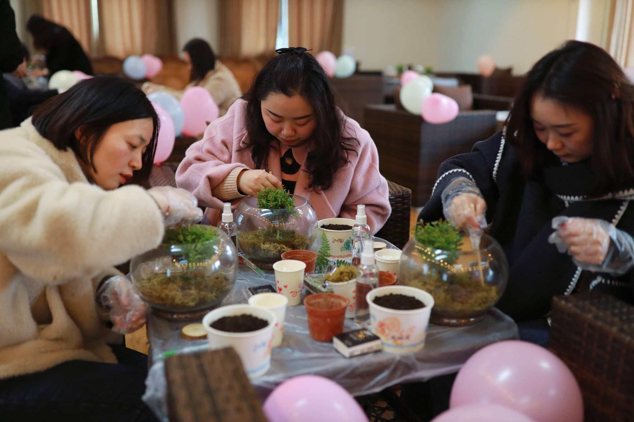 在都江堰校区,顺着扎满气球的楼梯,老师们来到精心布置的教职工活动中心二楼,用陶粒、腐土、小树、鲜苔、白石、摆件,打造美丽生态微景观。老师们沉浸在节日的欢乐中,深深感受到了学校对女教职工们的深深祝福,纷纷表示“太温馨了,太暖心了。”