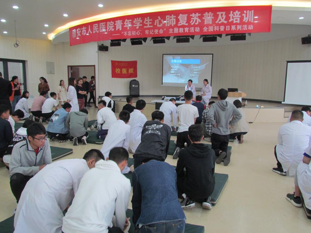 为纪念新中国成立70周年,落实2030健康中国的目标,雅安市人民医院联合后勤管理处校医院工会小组充分发挥资源优势,于9月27日上午在大学生创新创业孵化中心对我校60名大学生进行心肺复苏急救知识科普规范化培训,以提高大家的急救技能。据悉,此次培训的雅安市人民医院BLS团队已获得美国心脏协会认证。