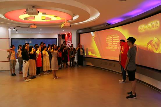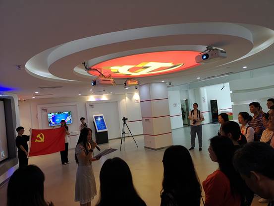 在党群服务中心的一楼,全体同志观看了电影《江姐》的视频片段,并在党委书记袁志香同志的带领下重温了入党誓词。大家面向党旗,举起右手,庄严宣誓。回顾铮铮誓言,坚定理想信念,牢记职责使命,重拾入党初心。