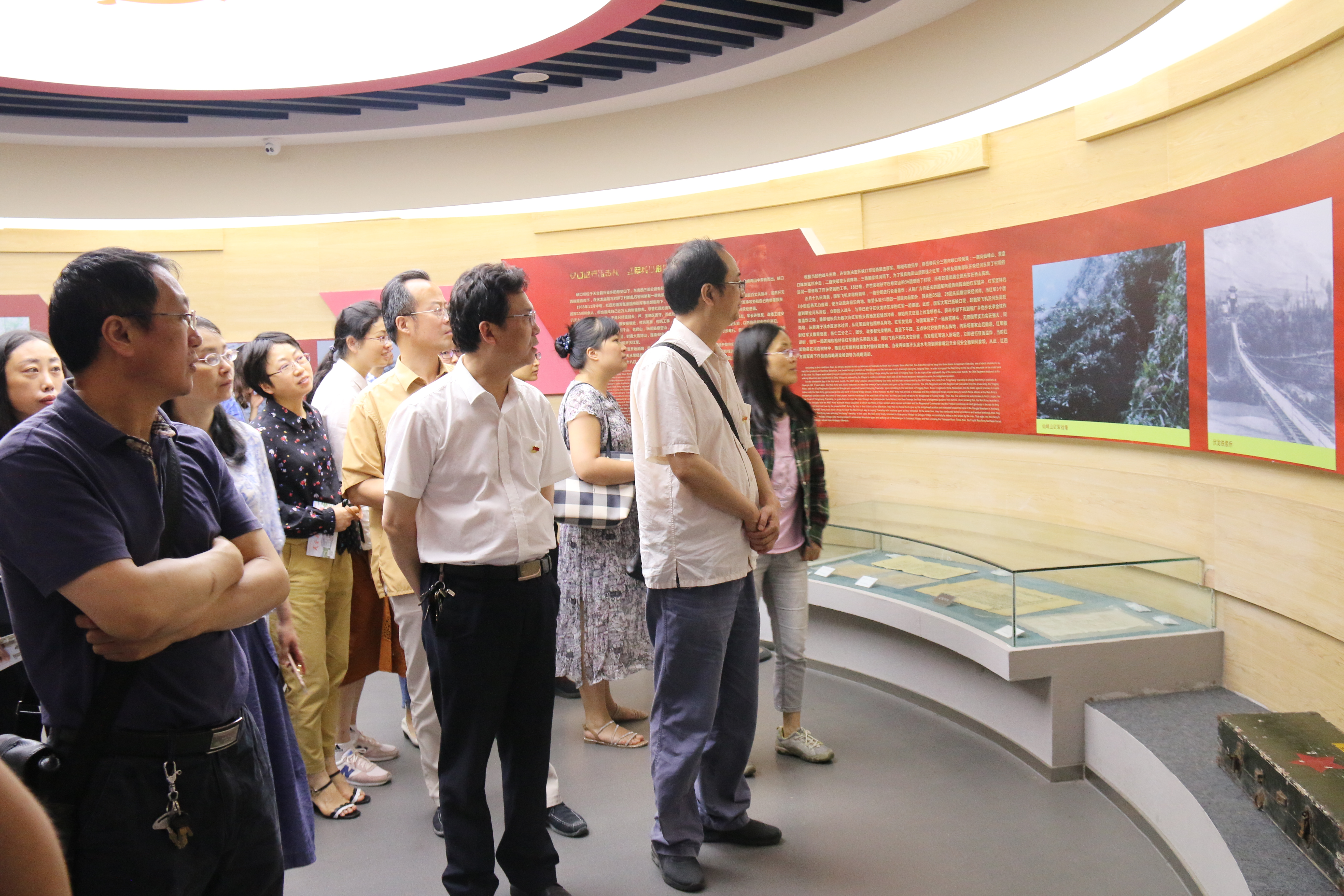 在天全县红军纪念馆教职工们跟随讲解员认真聆听红军长征过天全,浴血奋战建政权的艰辛历程。在芦山4.20强烈地震纪念馆,教职工们怀着沉重的心情,自发缅怀遇难同胞,致敬英勇烈士。随后参观了芦山地震抗震救灾和灾后恢复重建的伟大历程,真切感受到以习近平同志为核心的党中央的坚强有力领导和社会主义制度的无比优越性,为决胜全面建成小康社会,努力实现中华民族伟大复兴的中国梦的决心更加备受鼓舞。