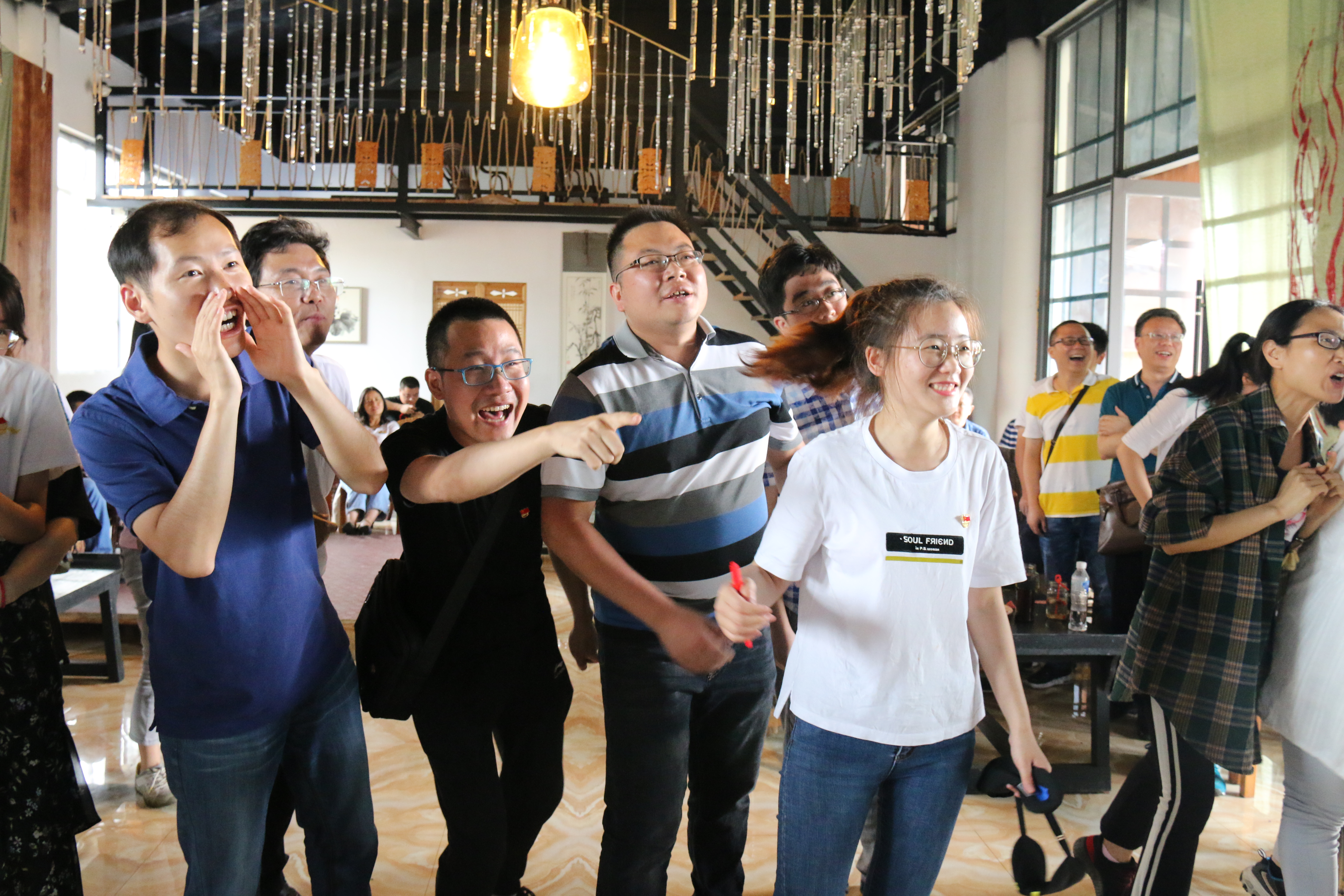 参观结束后,教职工们围坐在一起,聊聊工作,讲讲日常的烦恼,平时的压力在不经意间消散无踪。学院工会精心策划了团建活动,老师们随机分成三个团队,在“按摩操”、“蒙眼画图”、“嗑瓜子”等趣味活动中,各对成员齐心协力,热情高涨,纷纷积极参与,在欢声笑语中增进了彼此之间的交流与默契。这次活动充分缓解了教师们的工作压力,愉悦了身心,增进了交流。老师们纷纷为此次活动点赞,希望学院多开展此类活动,增强各系室教师间的沟通,凝心聚力,以更加饱满的热情投入到教学科研工作中。