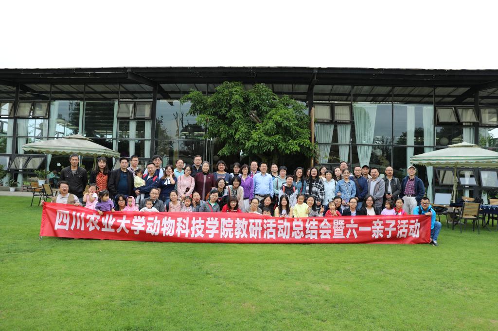 为庆祝“六·一”国际儿童节,5月28日,动物科技学院工会组织教学研讨总结大会暨“六·一”亲子活动。参加人员有:学院党委书记、工会主席潘宏,学院副院长张新全,以及近百名动科院在岗职工及20多名小朋友。当天强降温、降水的情况下,8:30全体人员准时乘车出发,有小朋友的车上增添了很多乐趣,1.5小时的车程倍感轻松、愉快。一下车就被这里的“绿”吸引,小朋友说“这里怎么这么甜呀,我在大口的吃空气”。这一天的活动很丰富,首先由各系、所代表张新全教授、张红平教授、杨淞副教授介绍教学研讨会的主要内容及推选学院本科教学质量奖比赛人员名单,通过精彩的语言、富有感染力的表情动作和生动有趣的讲解,把各系所的教研特色展示得淋漓尽致,时而掌声,时而讨论,会议激烈的持续近2小时;然后开展教职工素质拓展分组比赛(滚轮胎等)活动;精心设计和准备的亲子足球比赛和插花实践活动。