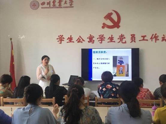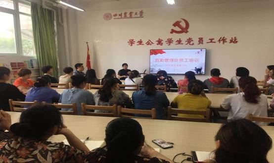 会上,苏德琼就公寓值班员岗位职责进行了讲解;李孝华阐述了成都校区学生寝室用电管理规定、成都校区学生公寓突发事件处理预案等制度;邱晓波就成都校区学生公寓工作人员规范用语、成都校区学生宿舍管理规定等制度进行了诠释;张建华对员工请销假制度和员工考核办法实施细则向大家做了详细的讲解和说明,希望大家通过此次培训,能更加清楚各自的岗位职责,明确学校、后勤管理处和科室的各项管理规章制度,提升业务水平,提高工作效率,更好地为广大师生员工服务。