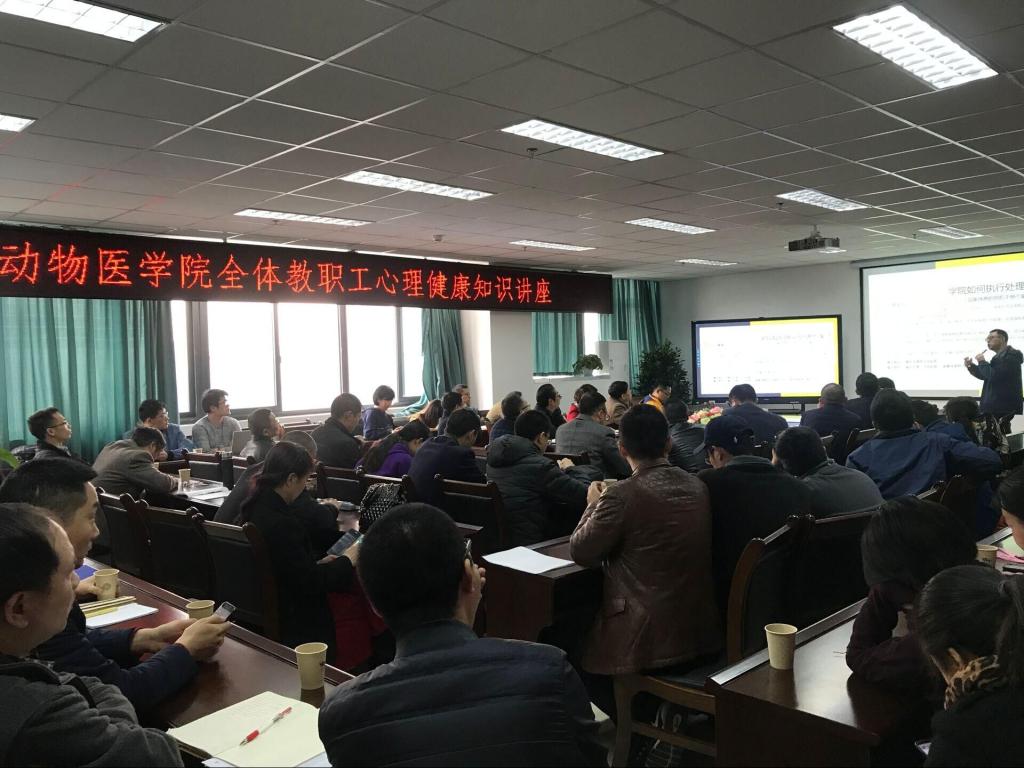 据悉,此次心理健康讲座是动物医学院党政及工会鼓励全院教职工树立健康优先理念,增强心理健康和危机干预意识,并进一步形成学院、教师和学生三方合力,正确应对心理危机,实现早发现、早关怀、早帮助、早治疗、早恢复,不错位任何一名师生,落实阳光心理教书育人的重要举措。学院党政及工会还将通过形式多样、内容丰富的活动加强学院心理服务体系建设,为培育全院师生自尊自信、理性平和、积极向上的社会心态,培养全院师生健全的心理健康素质创造良好的环境。