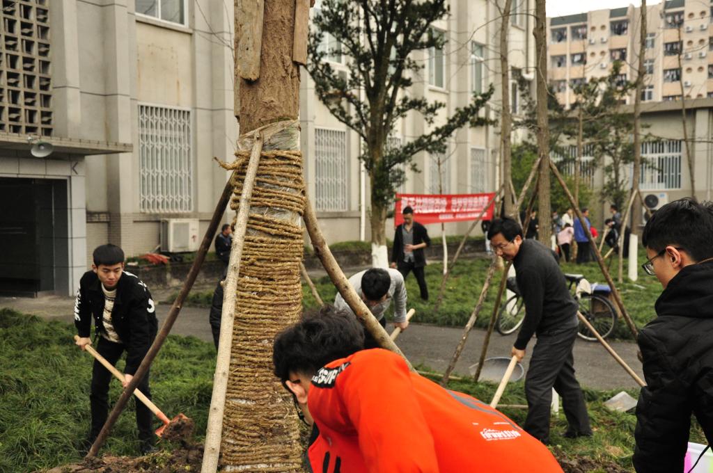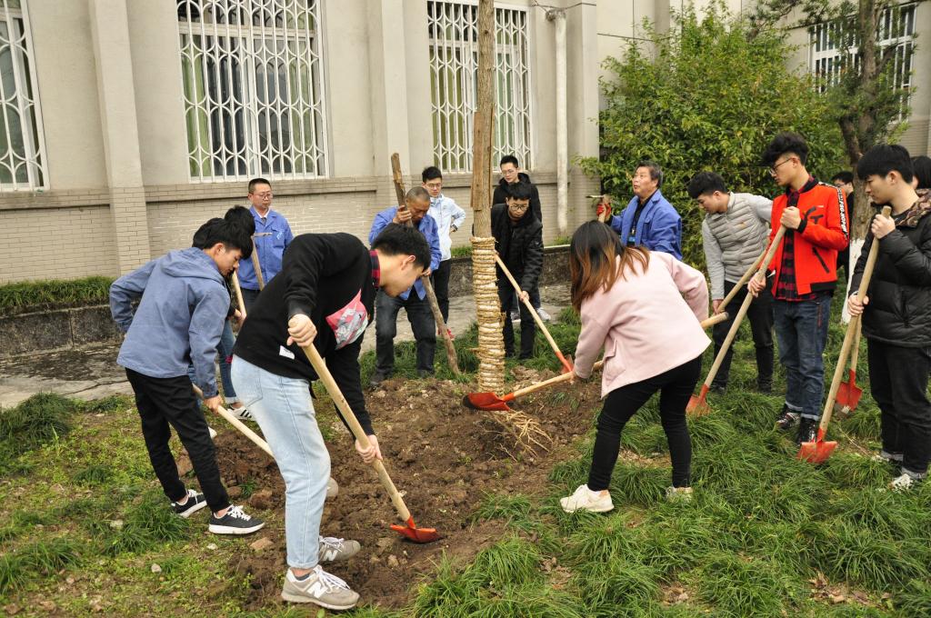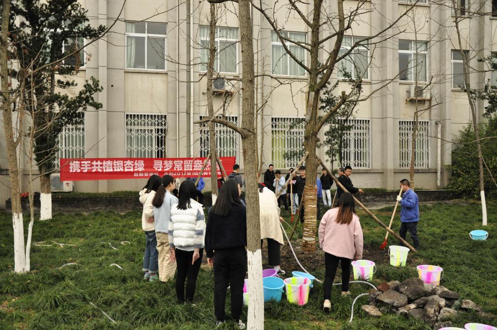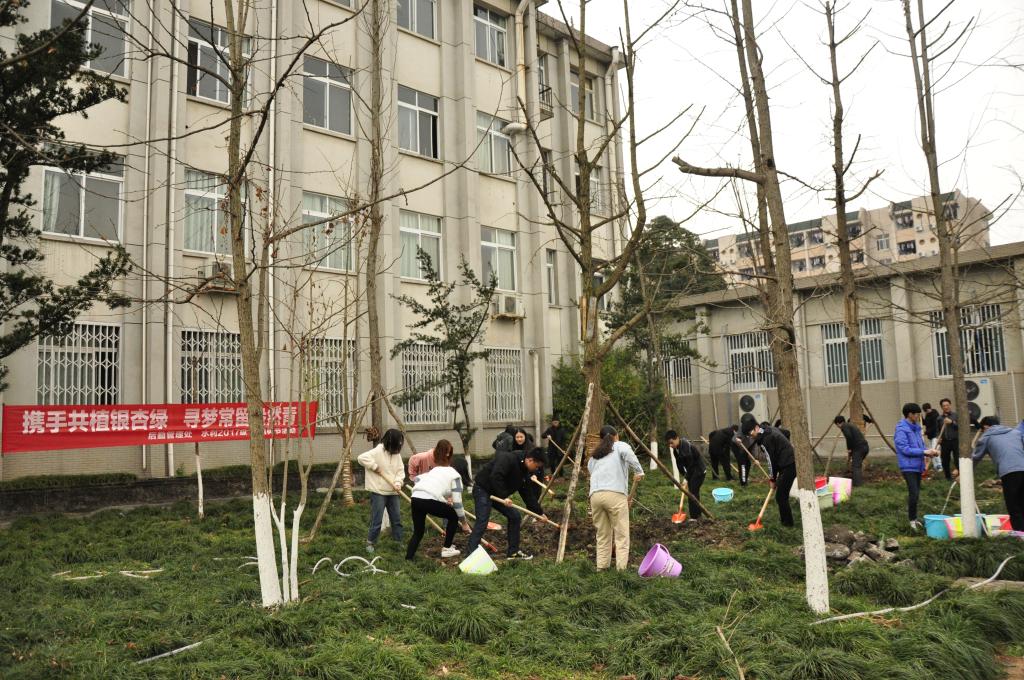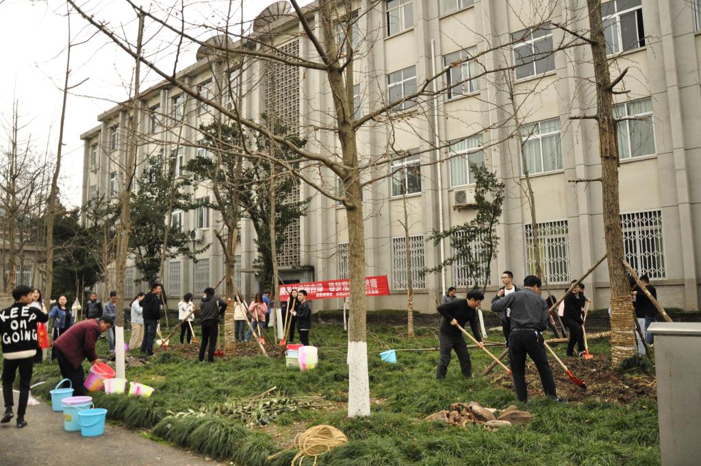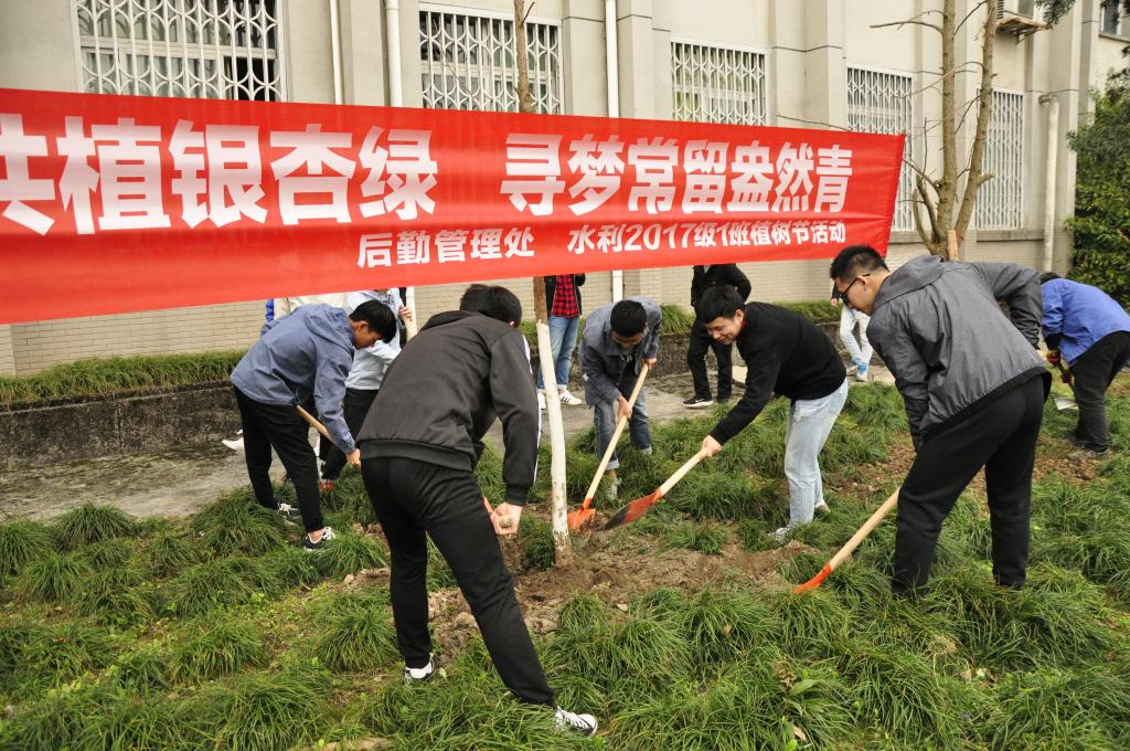 春日融融,新绿初绽,迎来了第41个植树节。3月12日下午,后勤管理处工会与水利水电学院水利2017级1班的同学们在三教后银杏林开展了义务植树活动,为校园环境再添新绿。