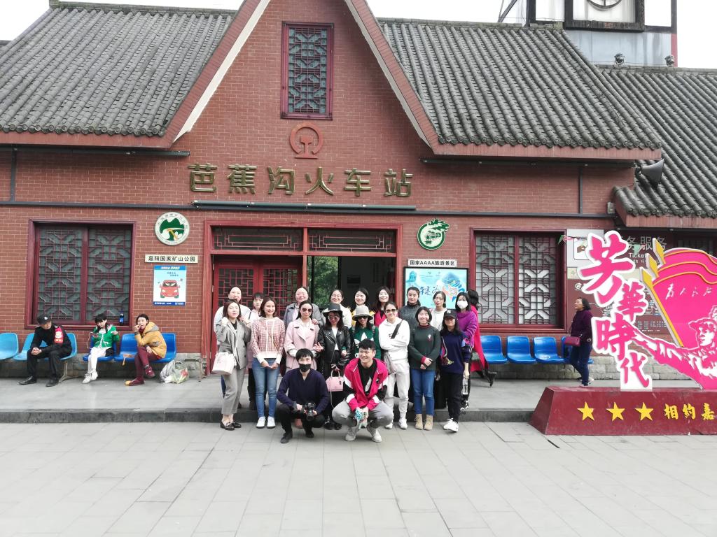 下午,老师们前往犍为县乘坐有着“工业革命活化石”之称的嘉阳小火车,随着“呜”的一声长啸,白色蒸汽从车头喷涌而出,火车像一头犁田的老牛,喘着粗气缓缓起步,浓烈的燃煤气味、细细的煤渣不时迎面而来。老师们感受着这独特的蒸汽小火车文化,探讨着衍生品的设计、文化的传播。火车驶过,留下一阵风,将两边的油菜花吹出金色的波浪,让空气散发着泥土的香。在这时空交错般的景色中,老师们以敏锐的审美触觉,拍出了一幅幅印象派般的照片,艺传学院老师们的风采,也一并留在了其中。