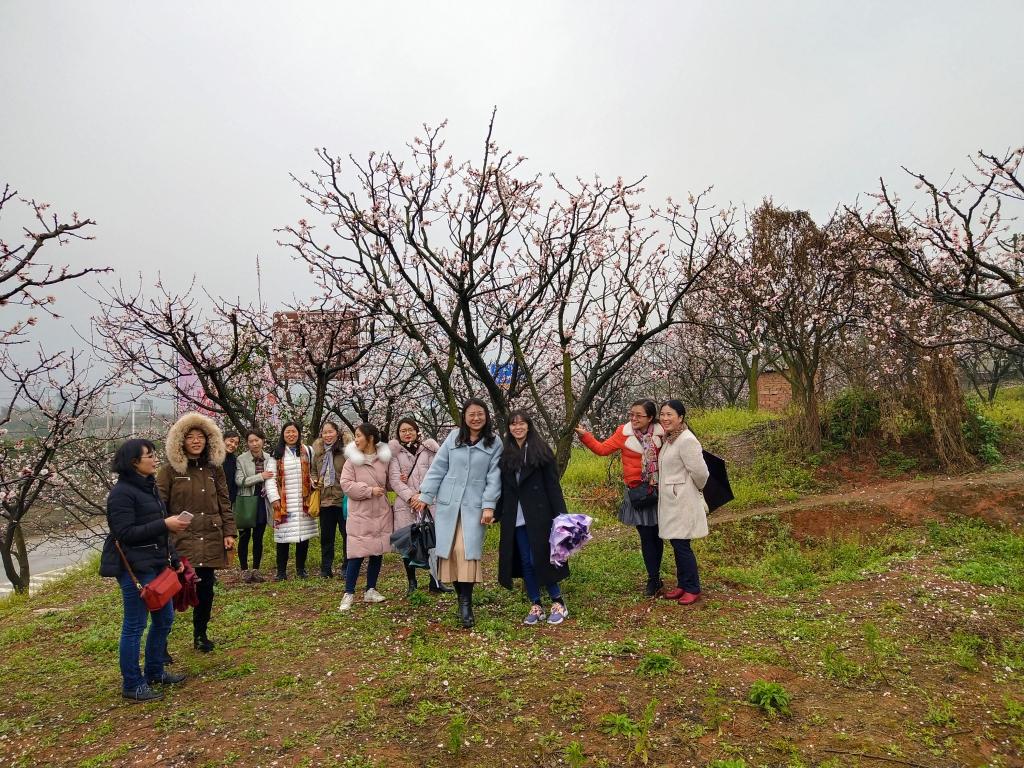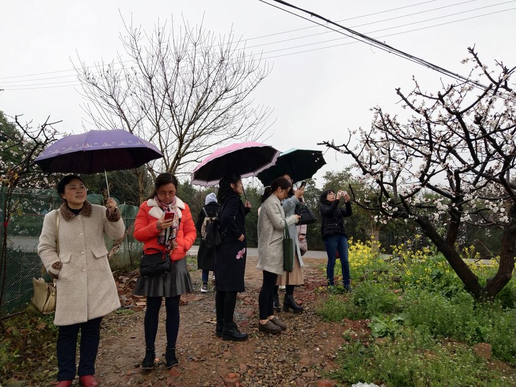 冒着蒙蒙细雨,踏着春天的节奏,欣赏田园风光。3月8日下午,农学院部门工会组织女职工们前往青白江区福洪乡幸福村,开展“三月杏花开,美女踏春来”为主题的“三八”妇女节活动。