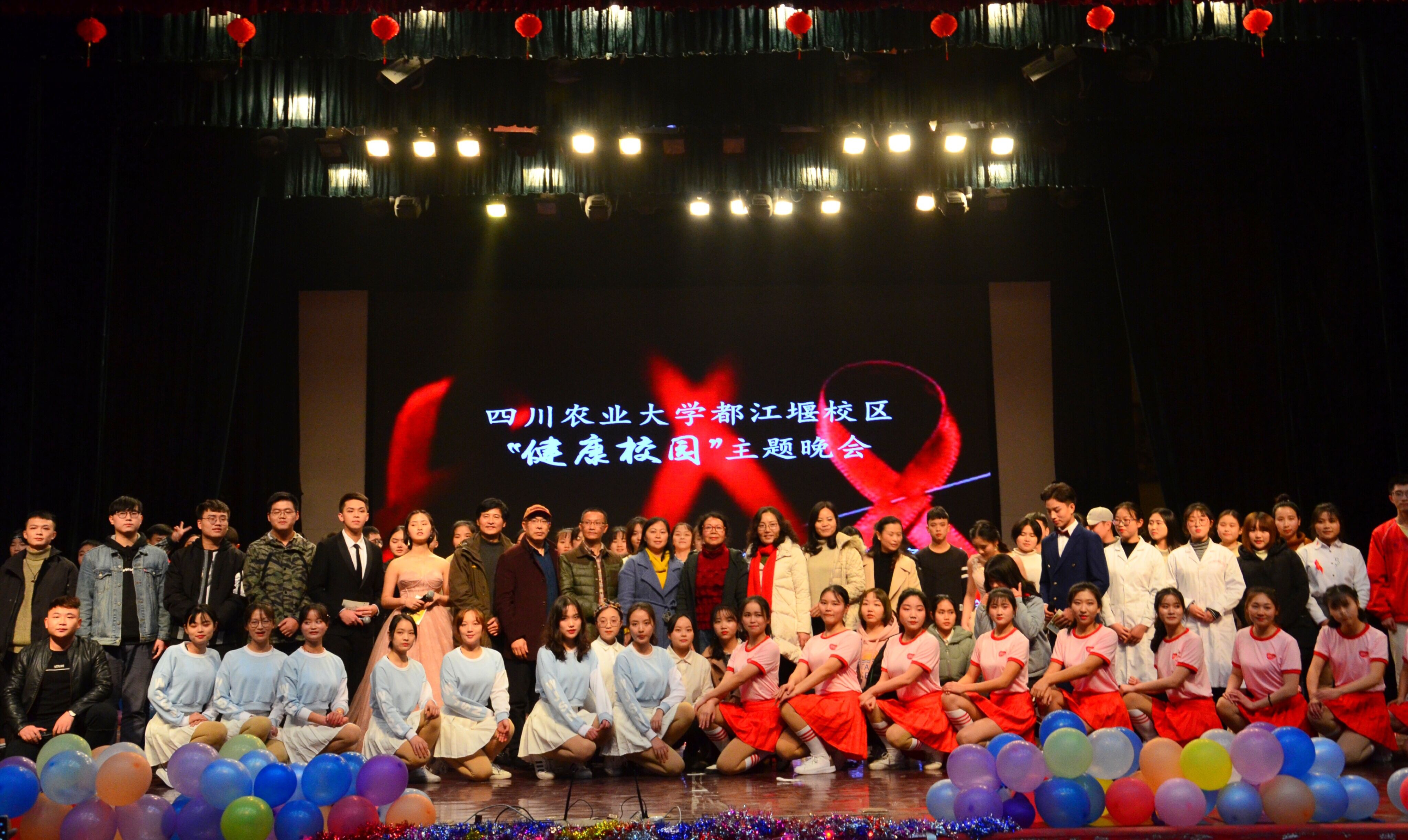 11月29日晚,“健康校园”主题晚会在都江堰校区活动中心举行。晚会由校区团委、校区后勤服务公司部门工会主办,校区医院、校区团委志工部、学生社团联合会红十字协会承办。学校学工部副部长、校区党委副书记陈中桂、校区后勤服务公司经理陈文华、都江堰市防艾办和疾控中心领导与800余名师生观看了本次演出。
