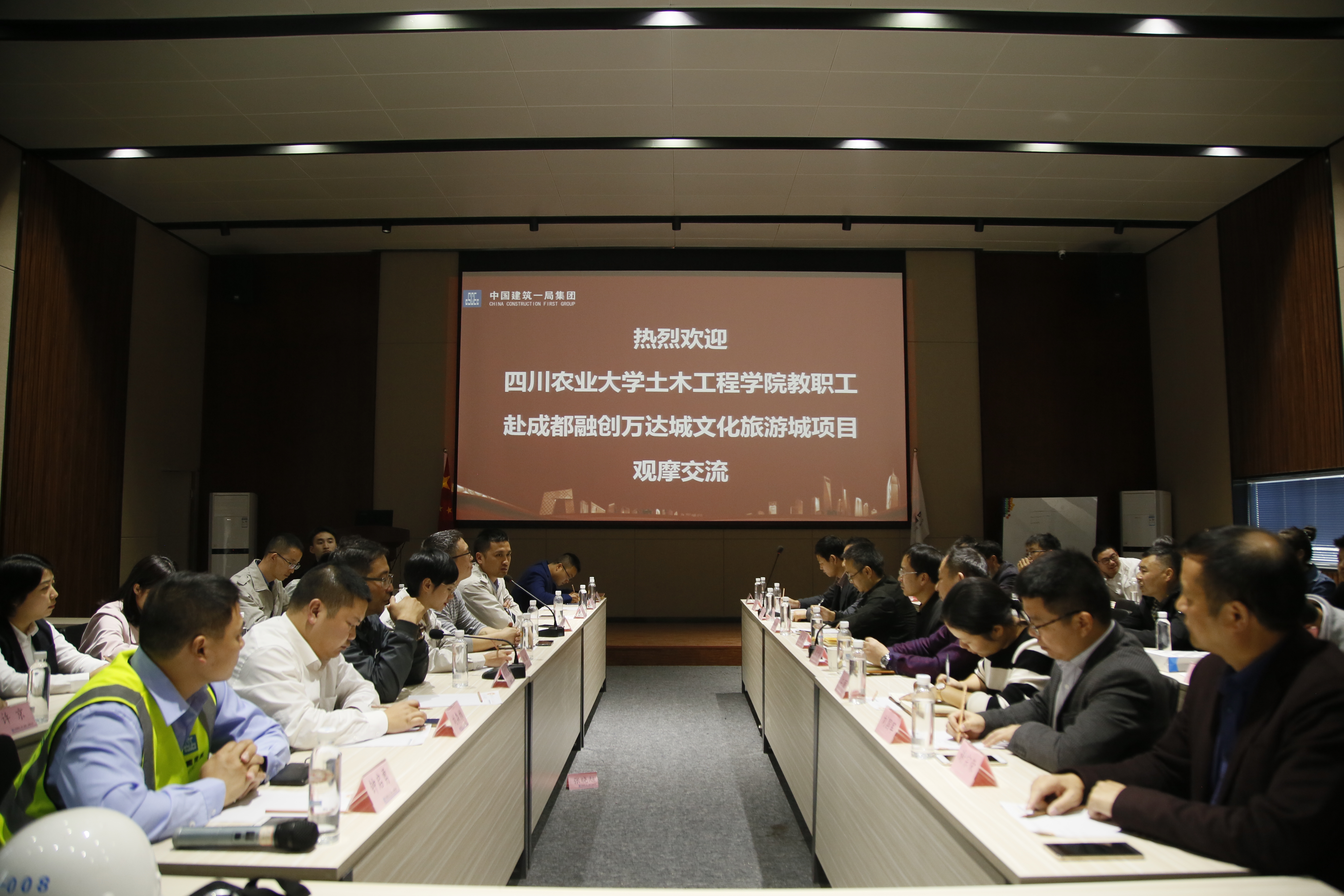 为进一步加强实践教学基地建设,深化院企产学研合作,促进人才培养。11月1日,由土木工程学院工会组织,院长朱占元,党委副书记、部门工会二级教代会主席秦之香,副院长、部门工会二级教代会副主席邹祖银带队,全院教职工参加,赴中建一局一公司“成都融创万达文化旅游城项目”开展研讨交流活动。中建一局一公司技术总工钱建基、西南分公司党总支副书记李丽、项目总指挥张晓旭、万达茂项目总经理闫治礼等陪同调研,并参与座谈。