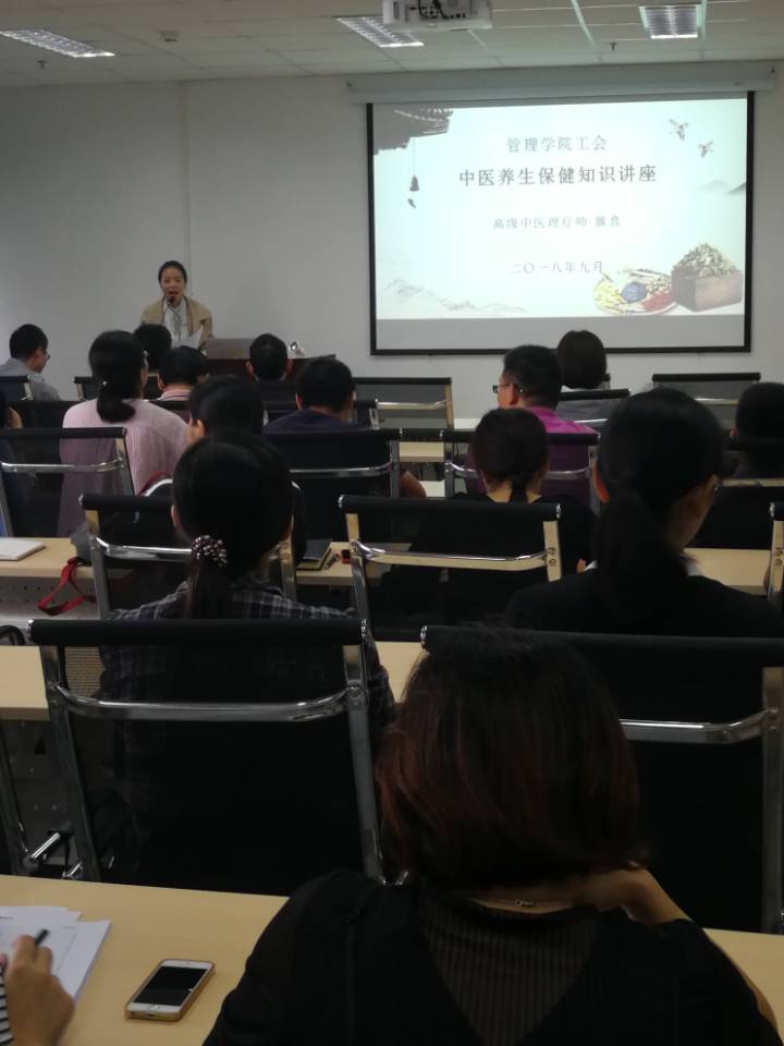 9月18日下午,管理学院工会针对教职工普遍存在的健康困扰,就大家普遍关心的养生保健问题,邀请高级中医理疗师雒熹医生作了一场中医养生保健讲座并举行为期五天的义诊。