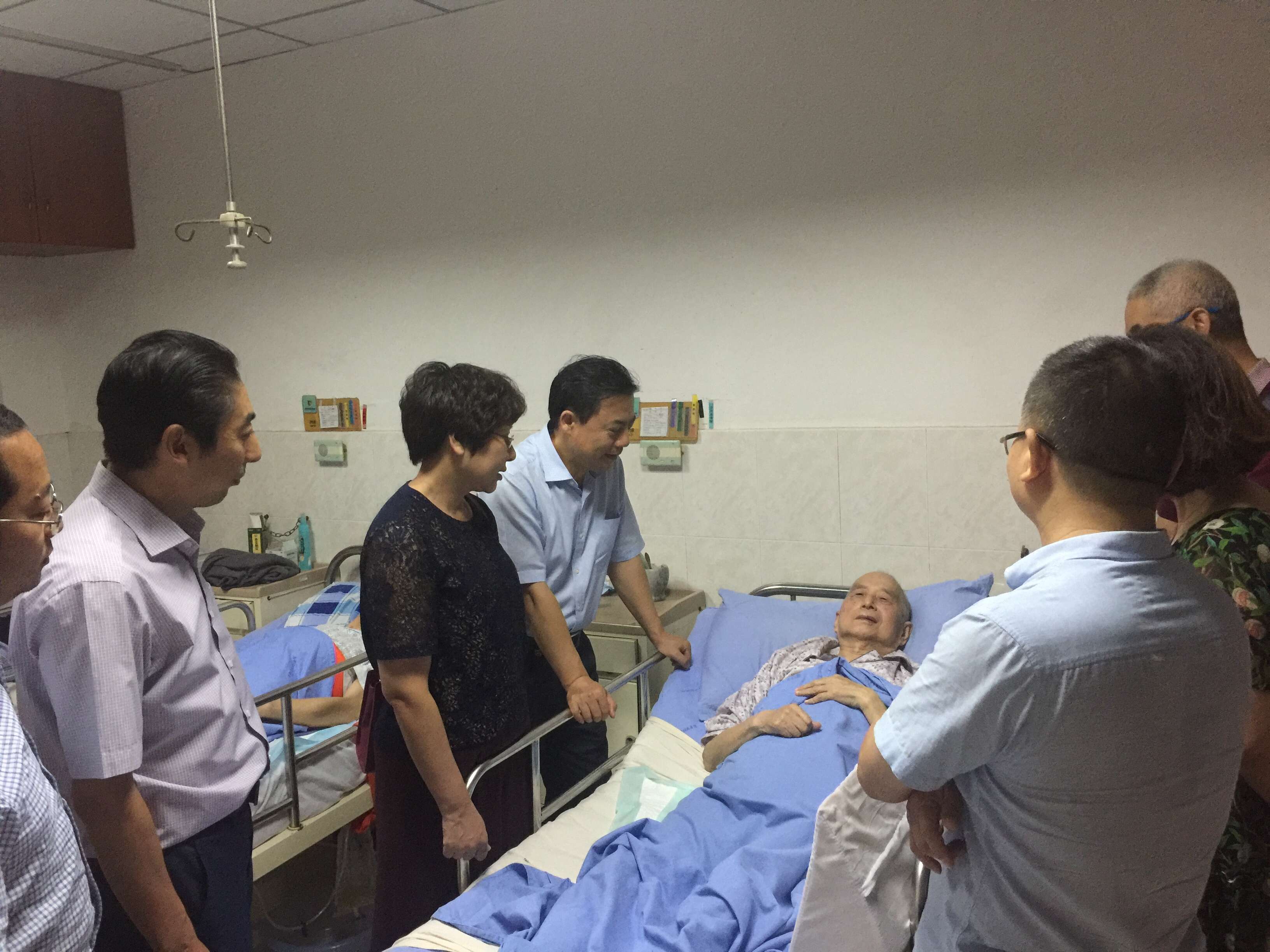 9月6日晚,动物医学院党委书记付瑞琼、院长程安春、副院长贾仁勇带领教代会主席陈正礼、教学办主任孙贤刚、工会副主席叶刚、关工委钟妮娜及预防系杨光友老师,专程赶往成都市第八人民医院,探望患病住院的退休教师赖从龙。