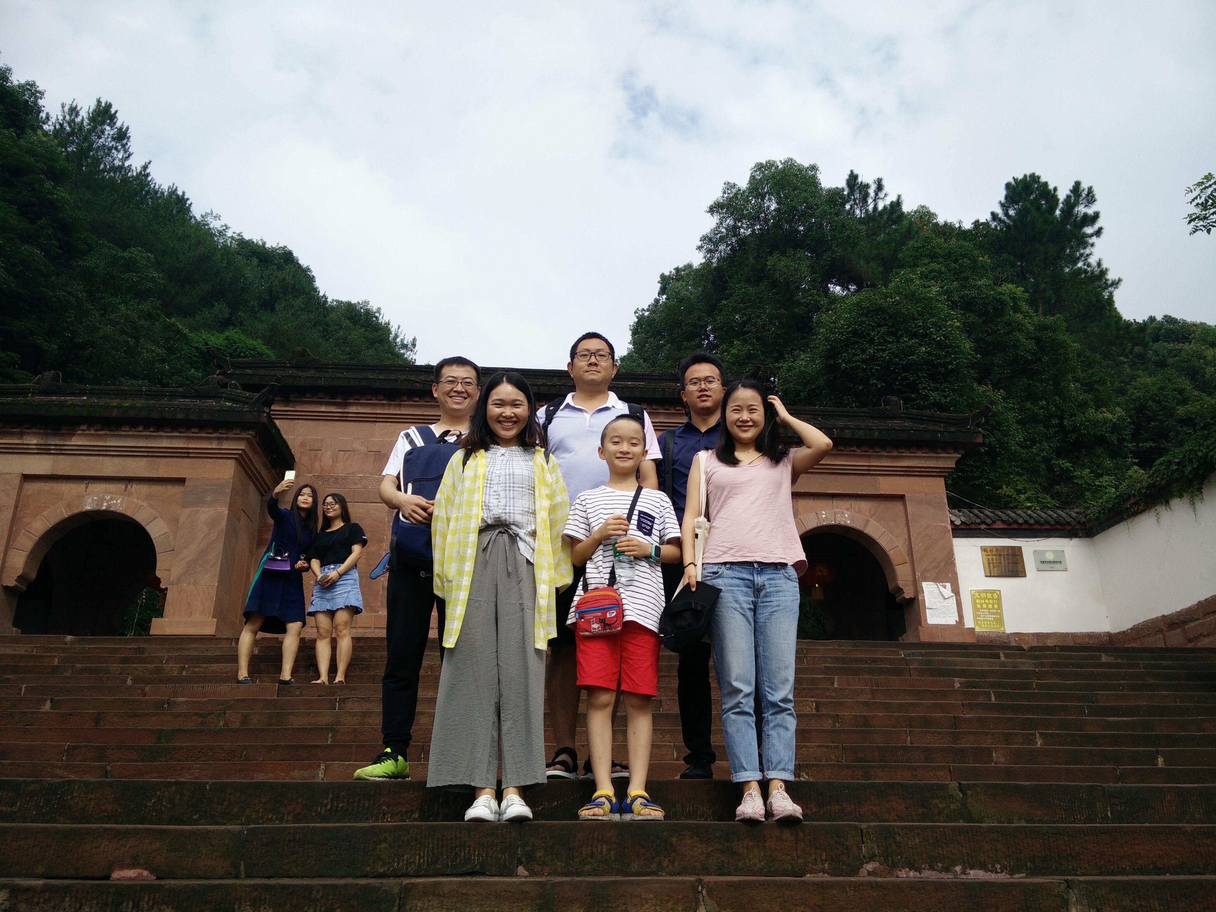 四川著名的白鹤寺就座落于白鹤山上,该寺始建于隋朝,经过历朝历代的翻修及维护,现形成了“大雄宝殿,读书台,四明楼,玉兔石,点易洞,石刻弥勒佛像”为主体的白鹤寺。因近期多次大雨,山路比较湿滑,老师们互相帮助顺利的抵达山顶。在上山的过程中,组织者给大家讲解了大雄宝殿的“释迦牟尼本身及化身像三尊”,以及其余殿堂的“观音,弥勒,韦驮,天王”的泥塑像,让大家增长了不少知识。