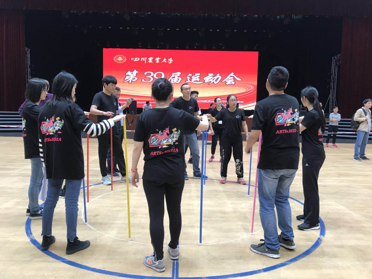 早上9:40比赛正式开始,学院教师身着自行设计、创意十足的统一“战袍”刚一亮相就吸引了周围师生的目光。老师们队伍整齐,组织有序,在领队和工作人员的组织协调下逐一参加各个项目。