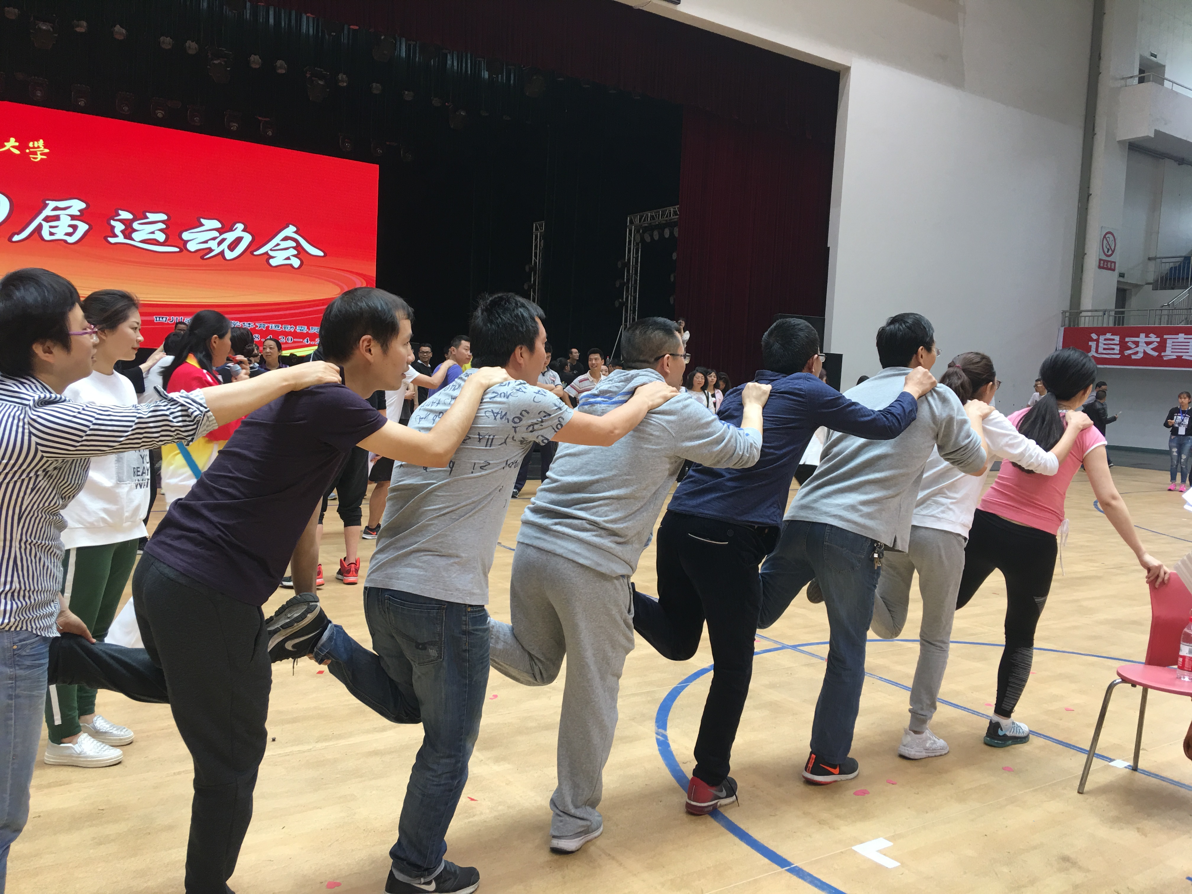 学院部门工会在运动会之前组织全体教职工运动员学习了各运动项目的规则,并对具体参赛项目人员进行了分组和配合训练。教职工们参加了滚雪球、兔子跳跑、2人3足接力赛、单脚火车赛跑、不倒森林、抱球迎面接力和毛毛虫竞速7个项目,全体老师们团结协作,全身心投入,啦啦队的助威声、老师们的欢笑声回响在运动场上。