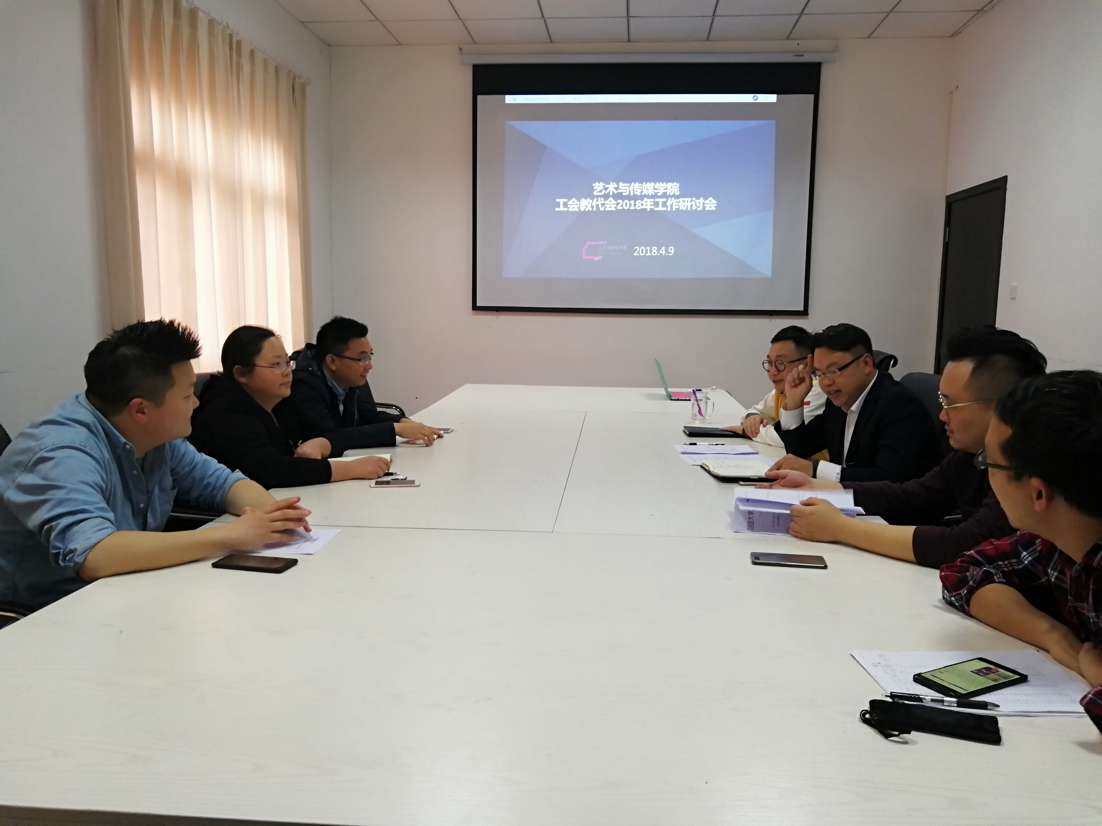 4月9日下午,学院工会教代会在四政214会议室召开了2018年工作研讨会。会议由工会主席胡永波主持,全体工会教代会委员参加了会议。
