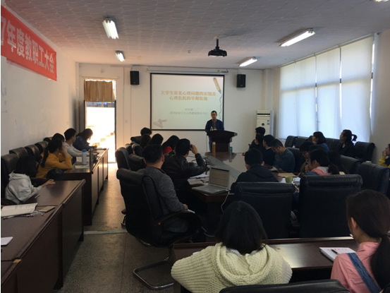 3月27日下午,艺传学院班主任专题培训2018年第一期在艺术楼三楼会议室举行。学校心理健康教育办公室主任欧居湖副教授应邀作了题为《大学生心理问题的识别及处置》的辅导讲座。学院副院长江霞、党委副书记兼工会副书记胡永波、全体辅导员、班主任及2016级、2017级小班心理委员参加了本次培训。
