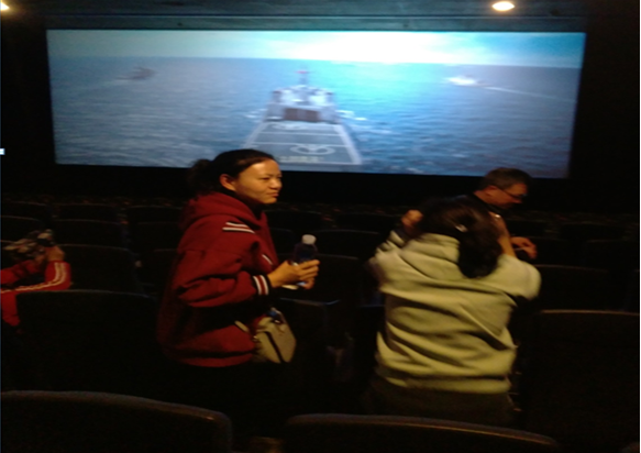 不知不觉中,看电影的时间快到了。大家加快了赶往太平洋电影院的脚步,于下午4:25分准时坐到了观看席上。