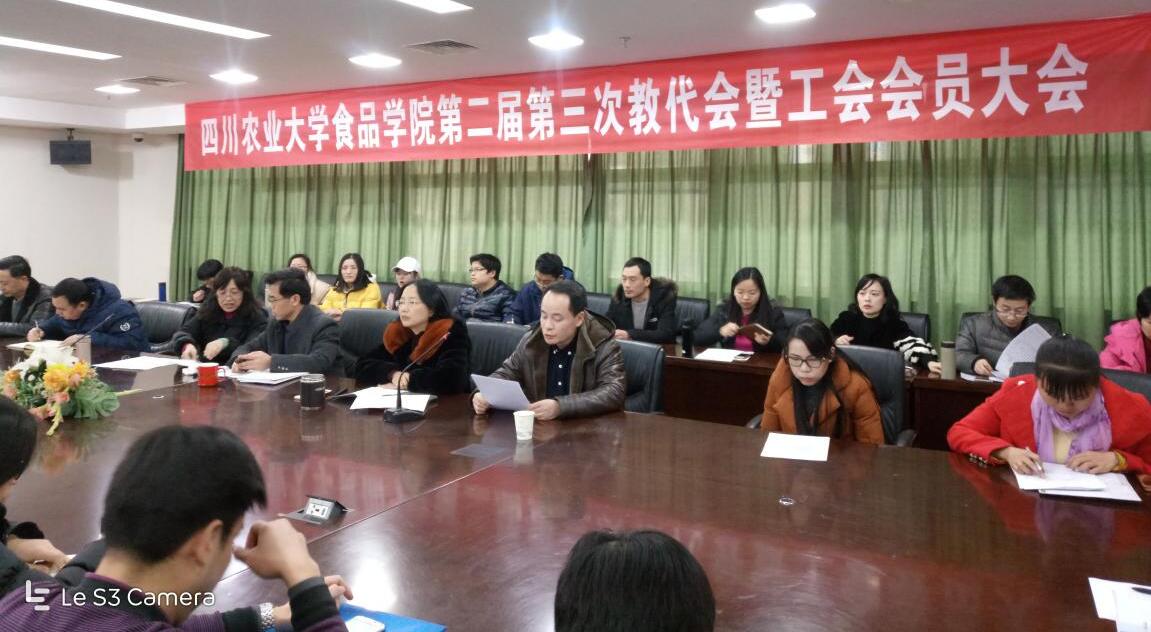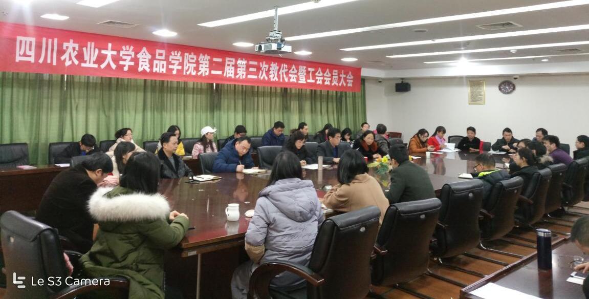 1月17日下午, 食品学院第二届第三次教代会暨工会会员大会在综合行政楼214会议室举行。会议由学院教代会主席叶劲松副教授主持,学院党委书记、副院长王莉副教授致闭幕辞。院长李诚教授、副院长秦文教授、副院长兼党委副书记张志清教授及全体在校教职工40余人参会。