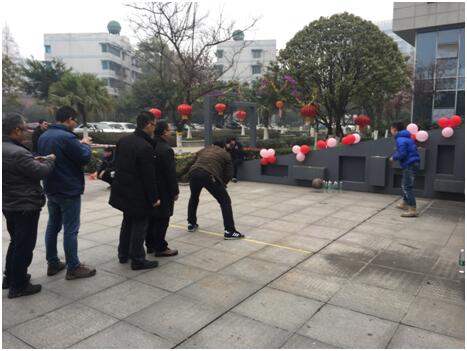 活动在教职工们的合照中拉开序幕,学院党委书记付瑞琼代表学院发表了热情洋溢的新年贺词,对大家的努力及去年取得的成绩表示感谢,并激励大家来年继续努力,为学院发展做出更大的成绩,学院工会主席曹三杰宣读了比赛项目和规则。随着学院院长程安春的一声令下,比赛活动正式开始。首先进行的是集体赛:拔河,趣味接力。拔河是最能展现团队力量的比赛项目,教职工们分为两组进行比拼。“1,2加油,1,2加油”,拉拉队员声嘶力竭的助威,参赛队员更是剑拔弩张,青筋暴起,寒冷的空气被教职工们的热血沸腾冲散。两个队伍实力不相伯仲。集体赛趣味接力中,教职工们个个摩拳擦掌,跃跃欲试。背靠背运气球,滚铁环,运乒乓球,夹弹珠等项目生动有趣,引起一阵阵欢笑。乒乓球的掉落,铁环跑偏,弹珠滚地等现象更令在场的所有人捧腹不止。经过集体赛激烈的热身,更加有竞争性的单人项目等着老师们去挑战。