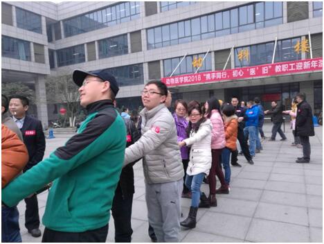 战鼓雷鸣庆元旦,喜气洋洋贺新年。为释放教职工日常工作压力,营造节日气氛,庆祝元旦,迎接新年。2017年12月29号上午10:00,动物医学院在第六教学楼下举了2018年“携手同行,初心“医”旧”工会迎新年游园活动。学院院长程安春、学院党委书记付瑞琼携全体党政、工会、教代会负责人及全体教职员工参加了活动。