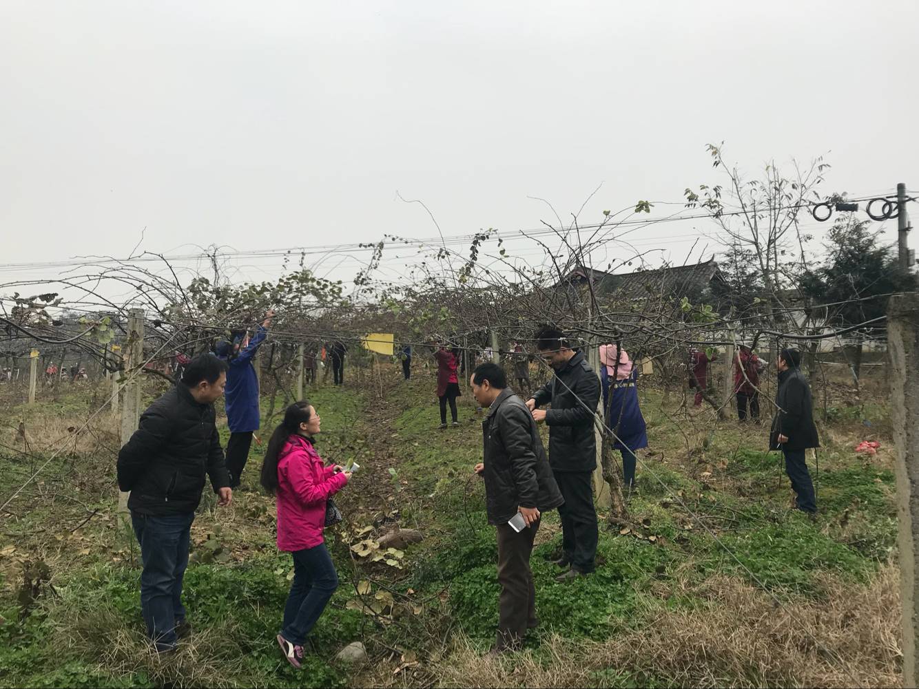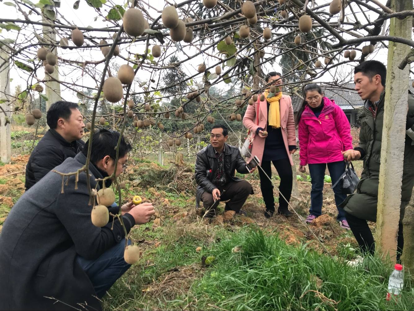 随后,又参观了联想集团佳沃公司在蒲江建立的10万亩国家级猕猴桃种植示范区,现场参观了该种植基地内规范先进的种植管理和水肥一体化基础设施状况,实地参观学习了先进的农业生产组织与管理模式,并与现场修枝清园的老乡们调查了解此猕猴桃园区的运营、管理、销售、效益等方面的情况,现场采摘缺素枝条给大家讲解缺素症状的观察识别与施肥调控技术,返程途中还参观了浦江、邛崃一线现代农业生产示范种植基地等农业系统工程。