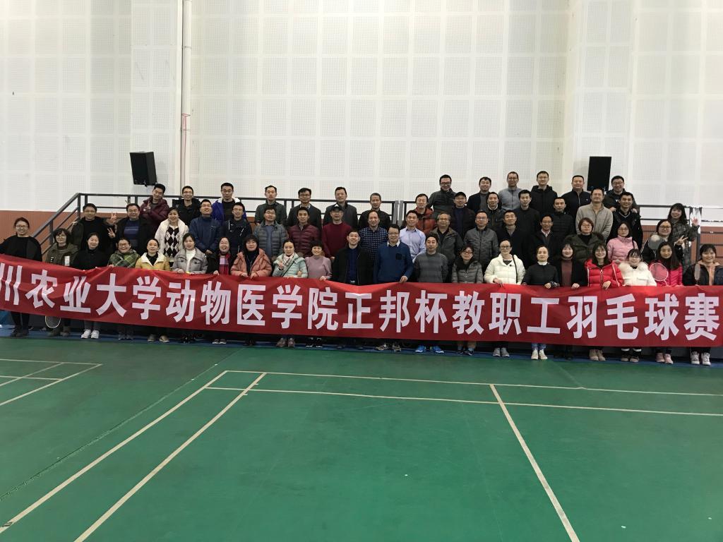 为了丰富学院教职工的课余文化生活,增强其体育锻炼意识,更好地促进各系室、中心教职工之间的沟通和了解,同时增进对企业的了解,让教职工们“携手正邦,共创未来”。12月19日下午,动物医学院在成都校区风雨球场举行了2019“正邦杯”教职工羽毛球比赛,学院党委书记廖鹏,学院副院长、工会主席曹三杰携全院教职工参加了比赛。
