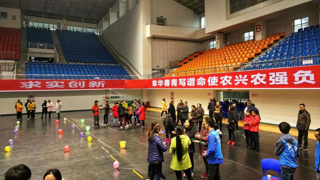 11月26日下午,为丰富员工体育文化生活,增进职工之间的友谊,宿舍管理一科工会小组组织的员工素质拓展活动在体育馆开展,50余名教职工参加活动。