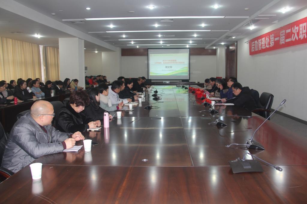 周文军作了后勤管理处2019年度工作报告、财务报告和年终奖分配方案说明;张世勇向与会代表宣读了管理处2019年度半年先进表彰决定并由管理处领导和职代会主席团为受表彰的10名部门员工代表现场颁发了荣誉证书;黄青向大会汇报了工会2019年度工作并就一届一次会议议案处理情况进行了说明。