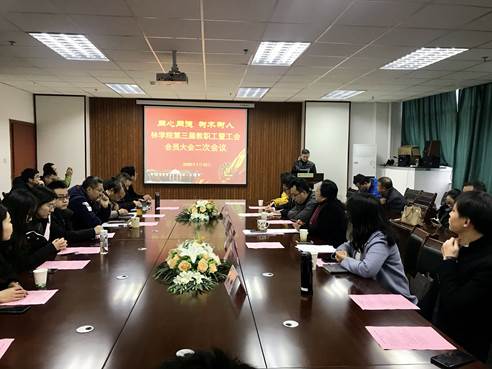 院工会副主席韩庆龙做工会年度总结报告。学院部门工会积极配合、参与学校各项工会活动,并对学院工会如何围绕学校中心工作,积极开展各项文体活动,师德师风建设活动,在民主管理与监督方面如何履职等方面进行了总结汇报。