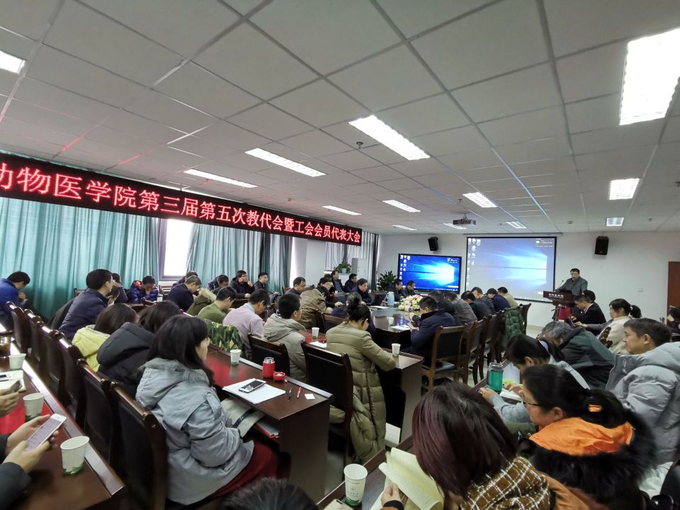 2020年1月8日下午,动物医学院在成都校区7教1109会议室举行学院第三届第五次教代会暨工会会员大会。学院领导及全院教职工参加会议。会议由学院第三届教代会主席陈正礼主持。
