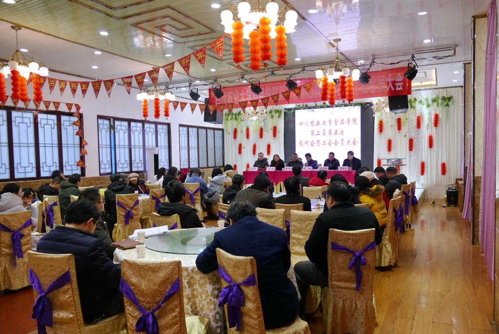 1月11日上午,食品学院第二届第五次教代会暨工会会员大会在雅安市雨城区土沙锅农家乐会议中心举行。院长李诚,学院党委书记曾小波,副院长、部门工会主席秦文,副院长兼党委副书记张志清及全体在校教职工50余人参会。会议由教代会主席叶劲松主持。
