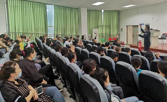 殷教官首先列举了几起触目惊心的火灾案例,血淋淋的事实让参训人员认识到火灾事故所带来的惨痛教训,真真切切地感受到了火灾的重大危害,引起了全场的共鸣。紧接着殷教官从火灾的分类、各类火灾的特点、危害、预防、自救与逃生方法进行了普及,对常见火灾事故的应急处理方法进行了讲解;针对后勤人员从业特点有针对性地讲解了日常消防知识及防火措施;详细介绍了各类火灾的不同防范措施及自救疏散知识。在此过程中,殷教官浅显易懂地对消防安全相关的法律法规及规章制度进行了介绍,强调后勤员工和管理人员在消防安全工作方面担负着的重大责任。