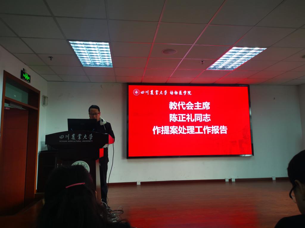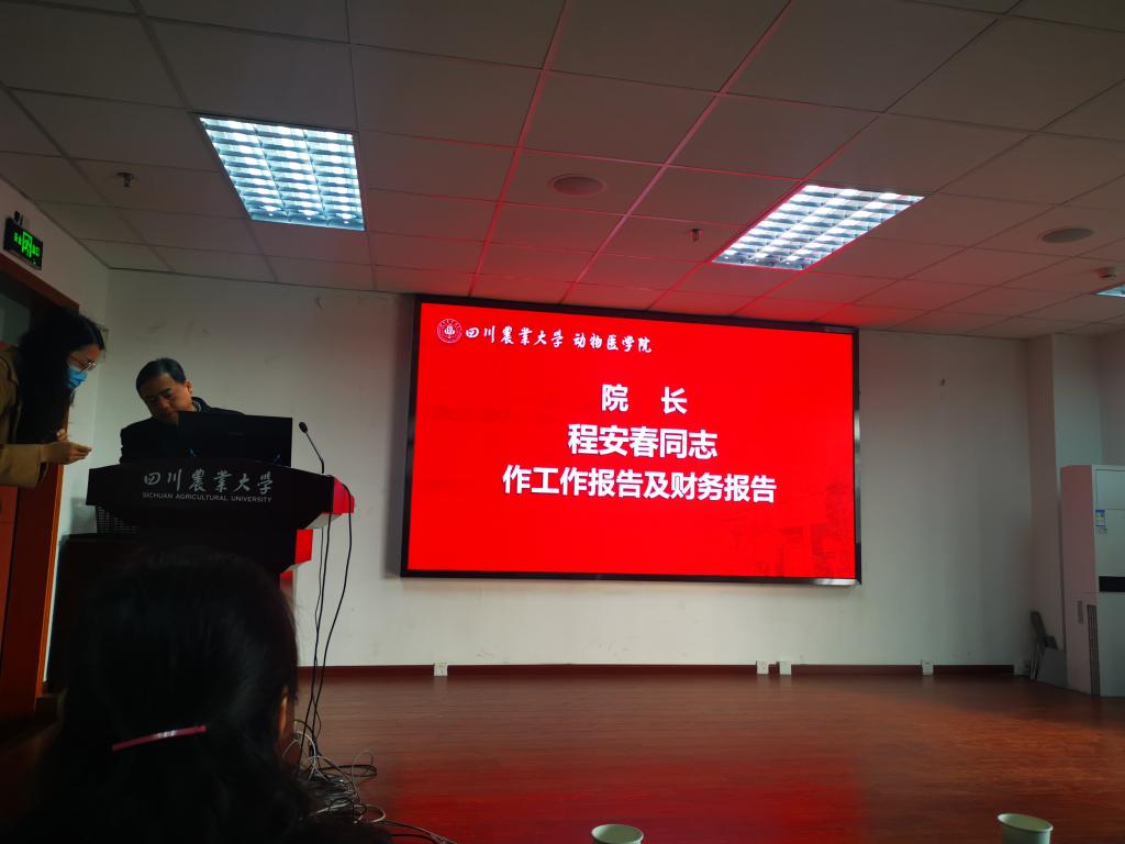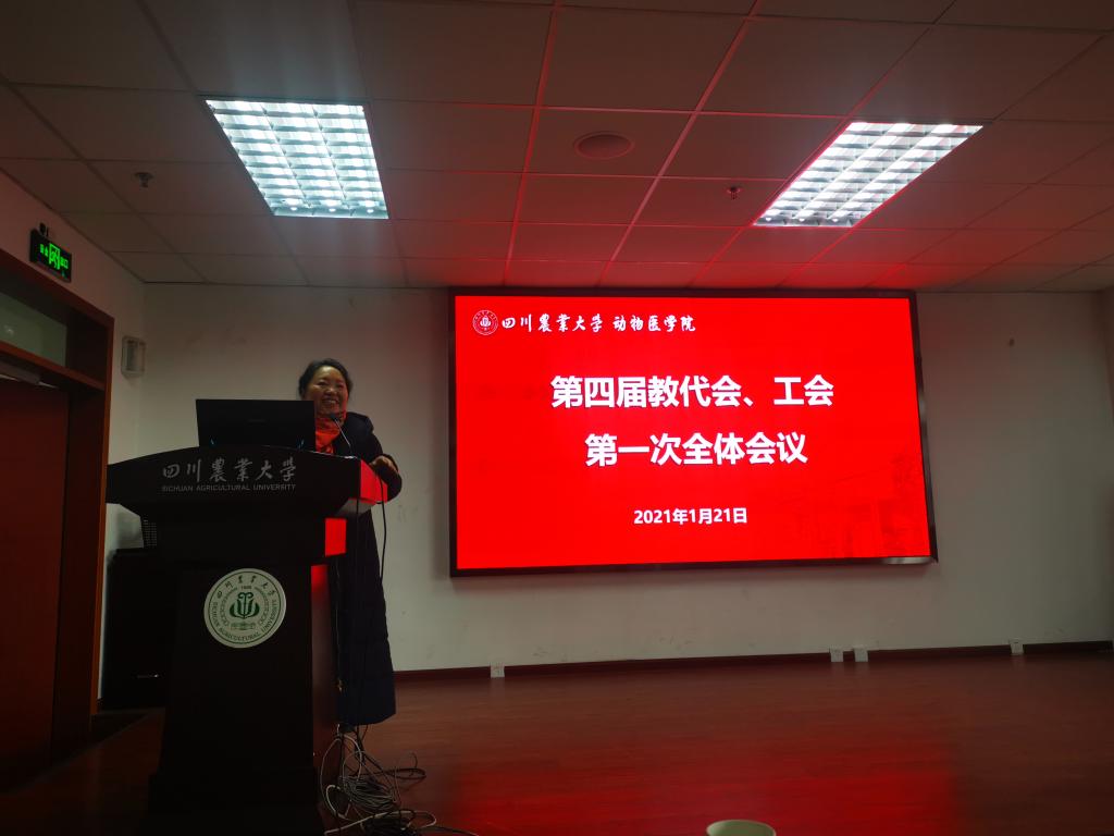 2021年1月21日上午,动物医学院在成都校区7教209会议室举行学院第四届教代会暨工会第一次会员大会。学院领导携全院教职工参加会议,学院邀请学校教代会主席、工会副主席李梅教授参加会议。会议由学院教代会主席陈正礼主持。
