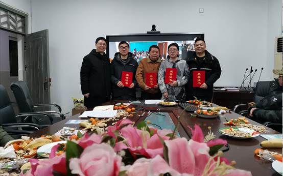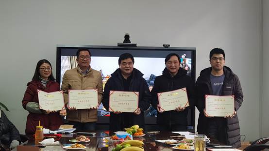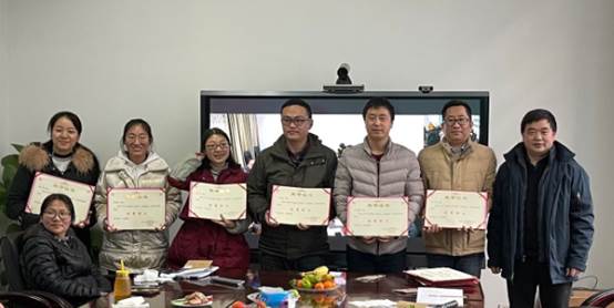 在第二阶段中,中心领导分别为获得年度考核优秀的教职工发放荣誉证书并合影。