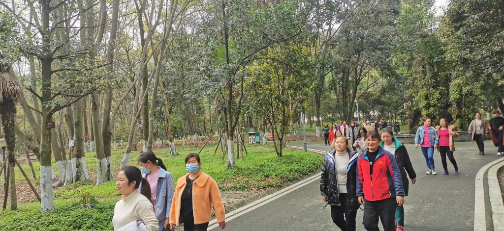 3月8日下午,在一年一度的三八国际妇女节到来之际,都江堰校区后勤服务公司部门工会组织90余名女职工开展健康校园行活动。