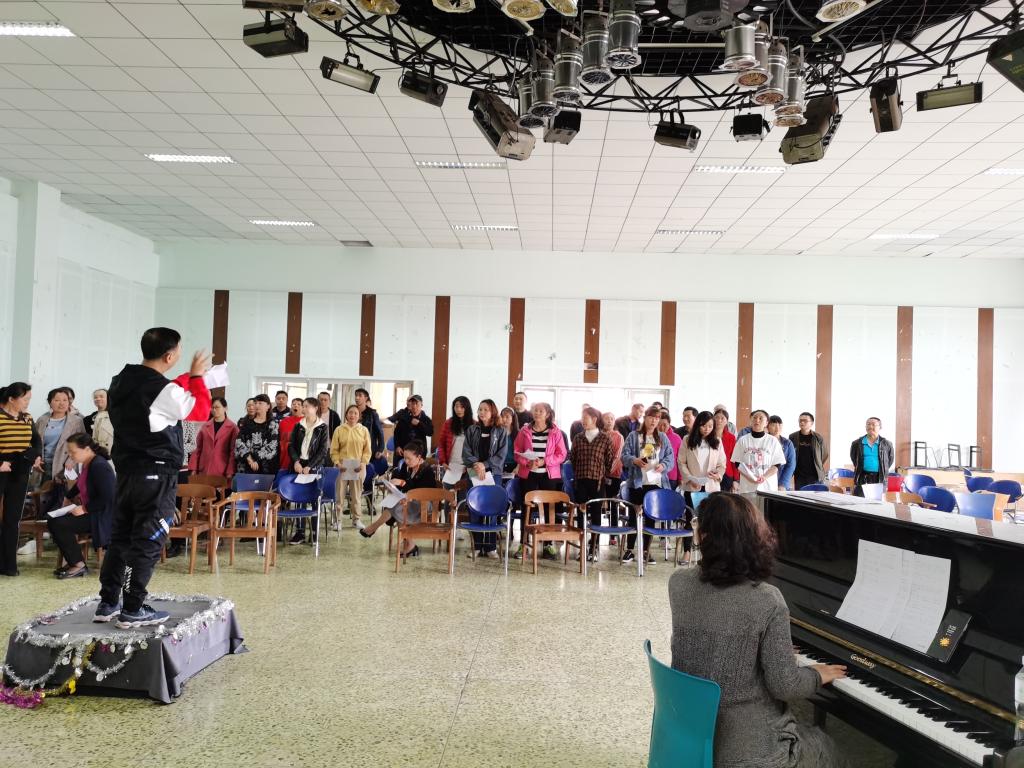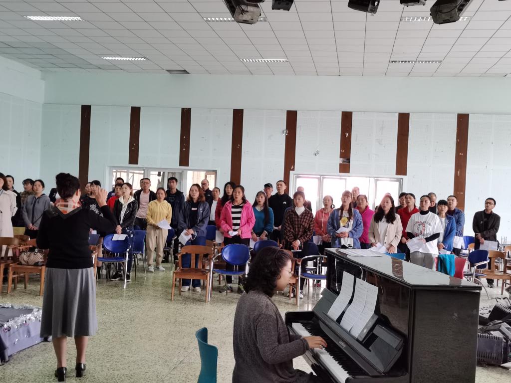 每周两次的合唱排练,队员们个个精神抖擞,积极对待,人人手中拿着《工农兵联合起来》《八月桂花遍地开》的歌词页,声乐老师一字一句的矫正发音、调节声部、传授技巧,指挥老师一遍又一遍的强化队员们对歌曲节奏感的把握,队员们反复演练实践,一个个下午过去,随着钢琴声响起的,是“不忘初心”后勤代表队所唱响的优美旋律,是后勤人满腔爱党爱国情怀的慷慨激昂,川农后勤人把颂歌献给党。